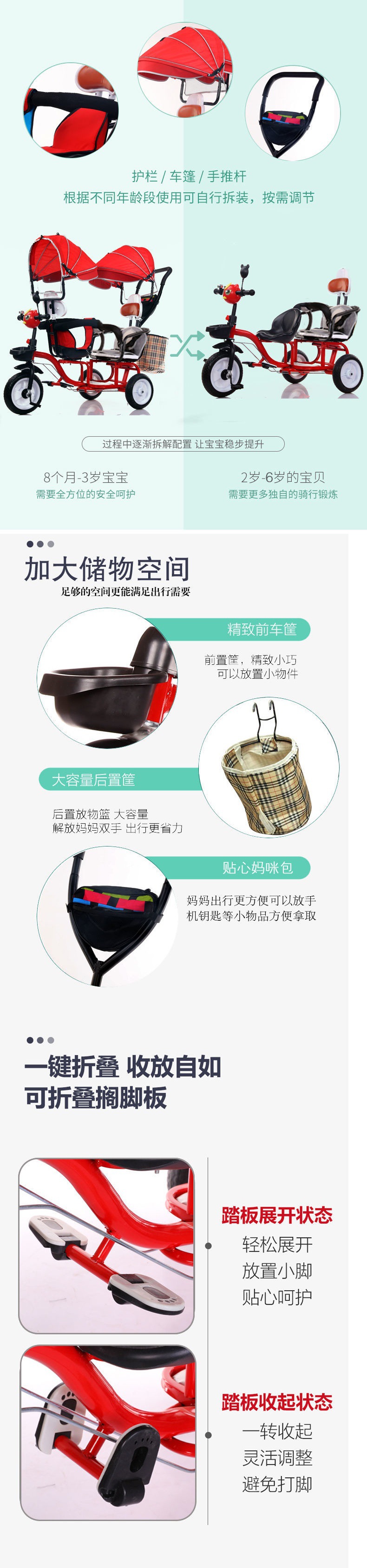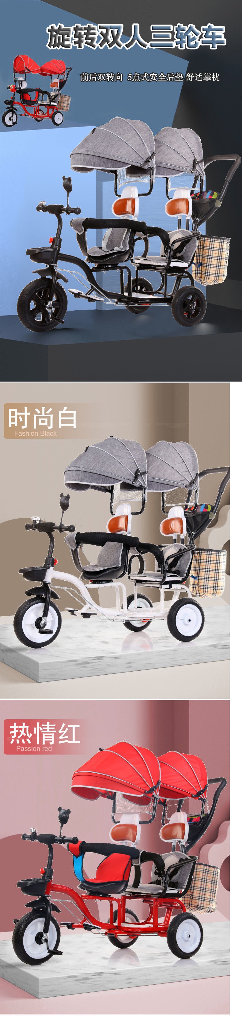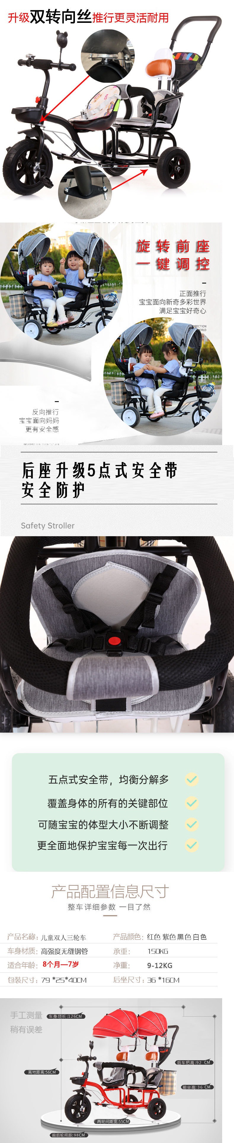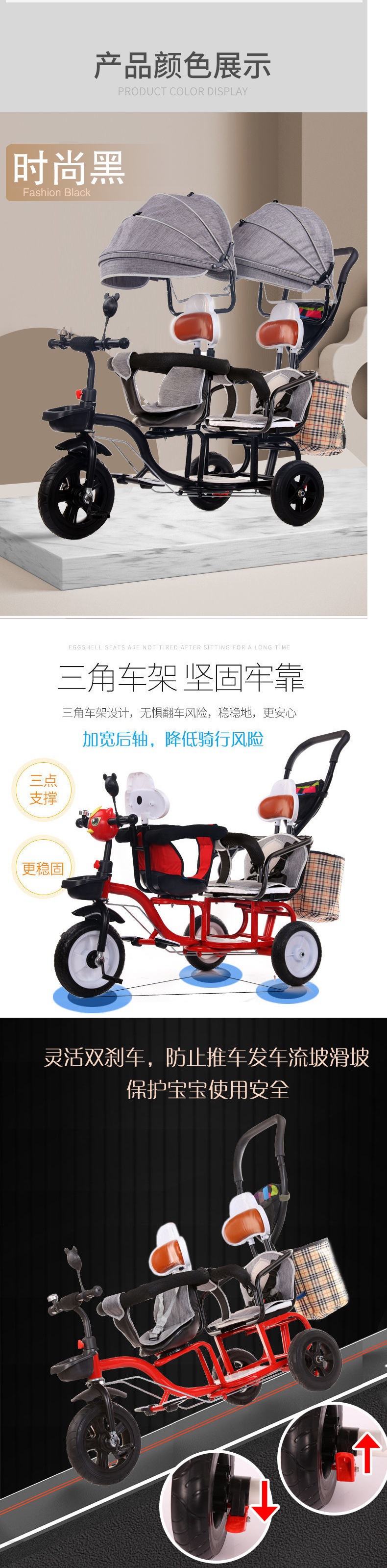 Xe ba bánh trẻ em đôi xe lớn hai chỗ ngồi ba bánh đôi xe đẩy em bé đôi trẻ em xe bán buôn