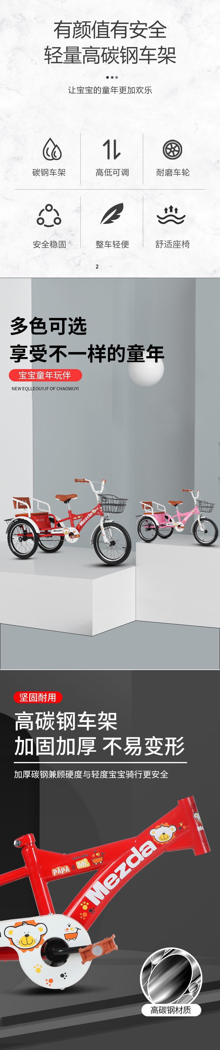Xe ba bánh trẻ em Meizda 2-12 tuổi xe đạp song song có thể được điều khiển xe đạp xô phía sau đồ chơi trẻ em