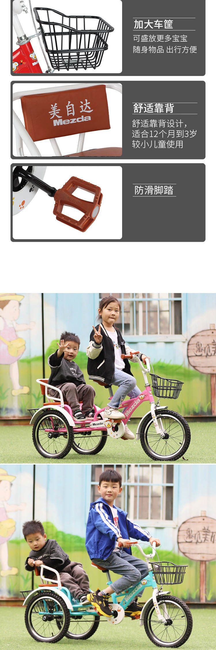 Xe ba bánh trẻ em Meizda 2-12 tuổi xe đạp song song có thể được điều khiển xe đạp xô phía sau đồ chơi trẻ em