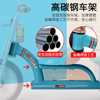 Xe ba bánh tự đổ có nhạc và đèn Xe đạp trẻ em mẫu giáo 3-6 tuổi có thể bán buôn thay cho xe ba bánh trẻ em