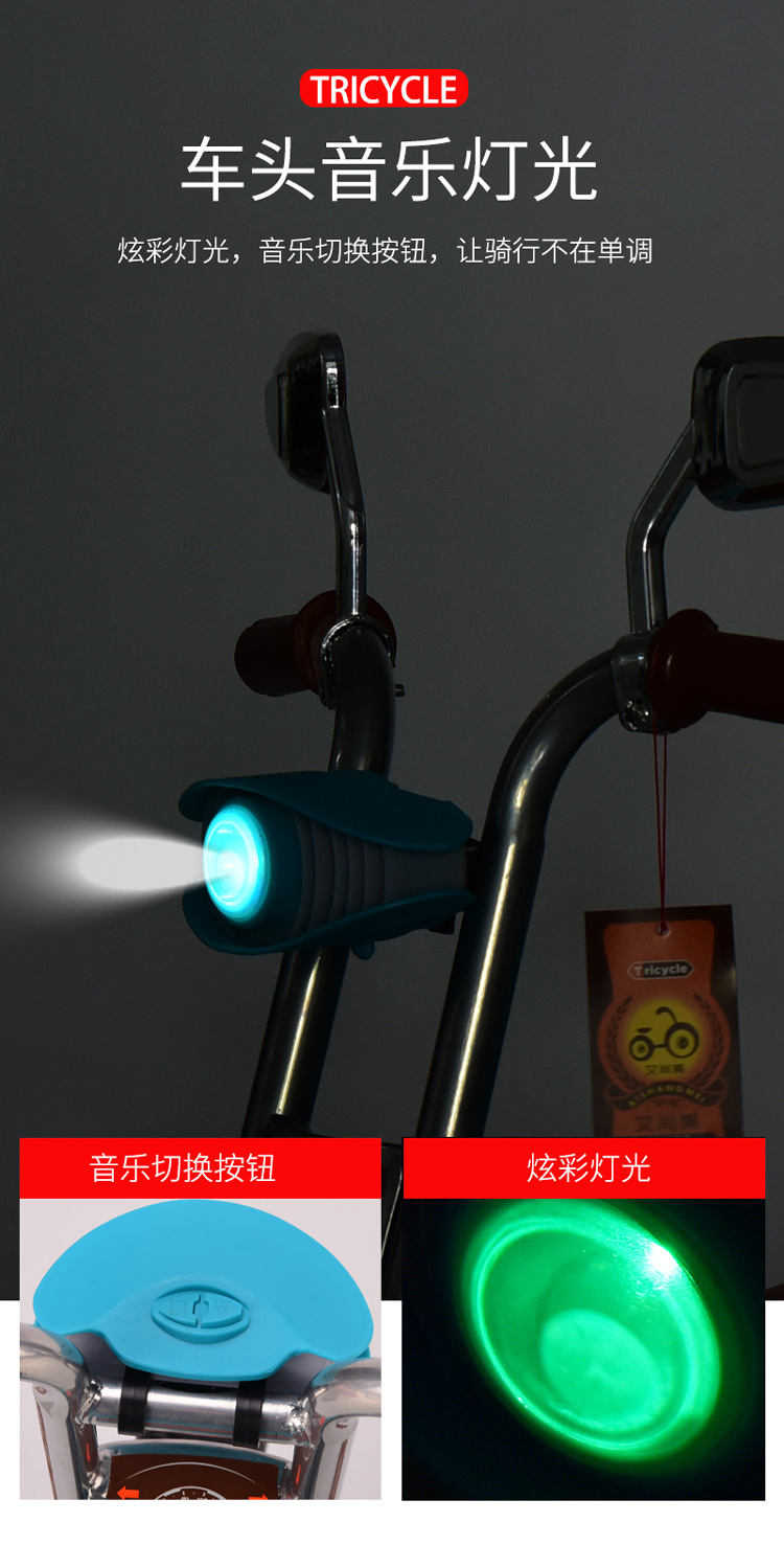 Xe ba bánh tự đổ có nhạc và đèn Xe đạp trẻ em mẫu giáo 3-6 tuổi có thể bán buôn thay cho xe ba bánh trẻ em