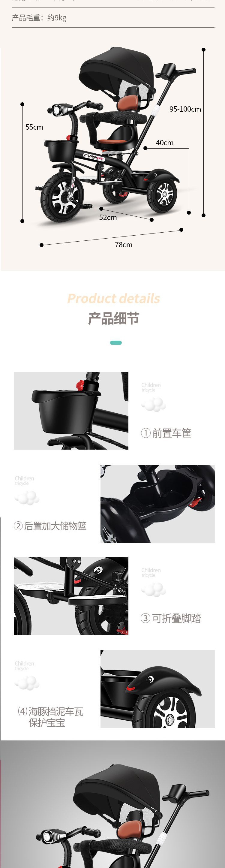 Xe đạp ba bánh trẻ em 1-3-6 tuổi bé lớn tay đẩy bé tự cưỡi trên AliExpress