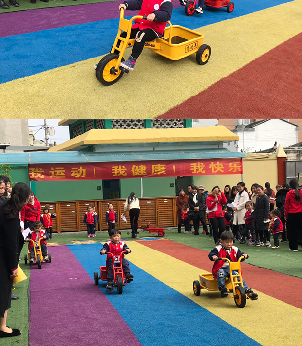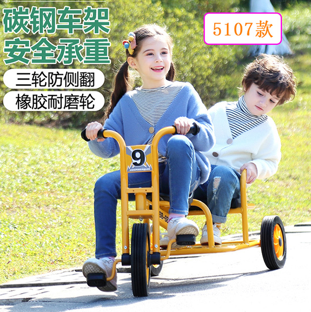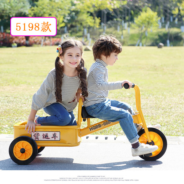 Xe đạp song song ba bánh dành cho trẻ em mẫu giáo xe đẩy dành cho giáo dục mầm non có xô có thể chở người nhà sản xuất đồ chơi ngoài trời