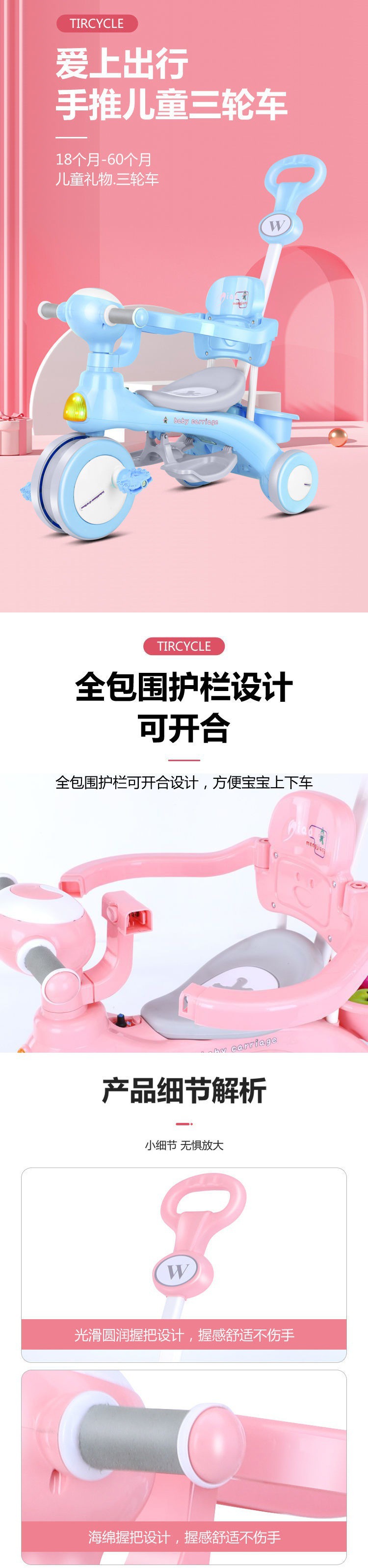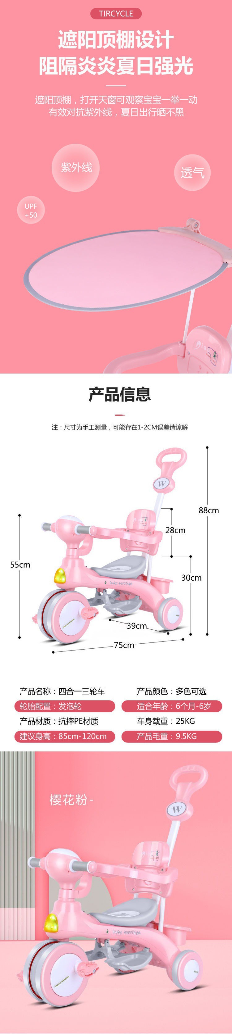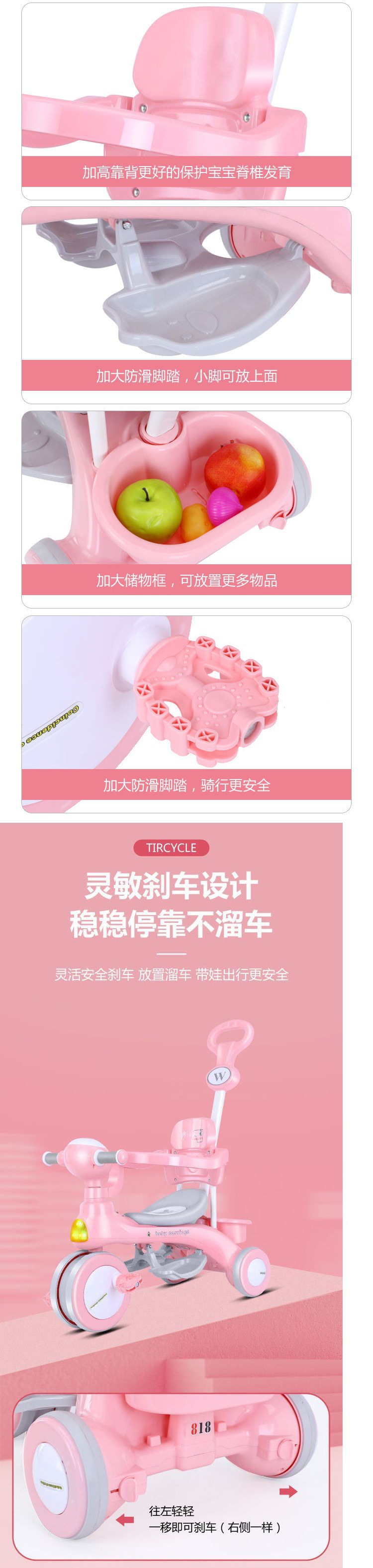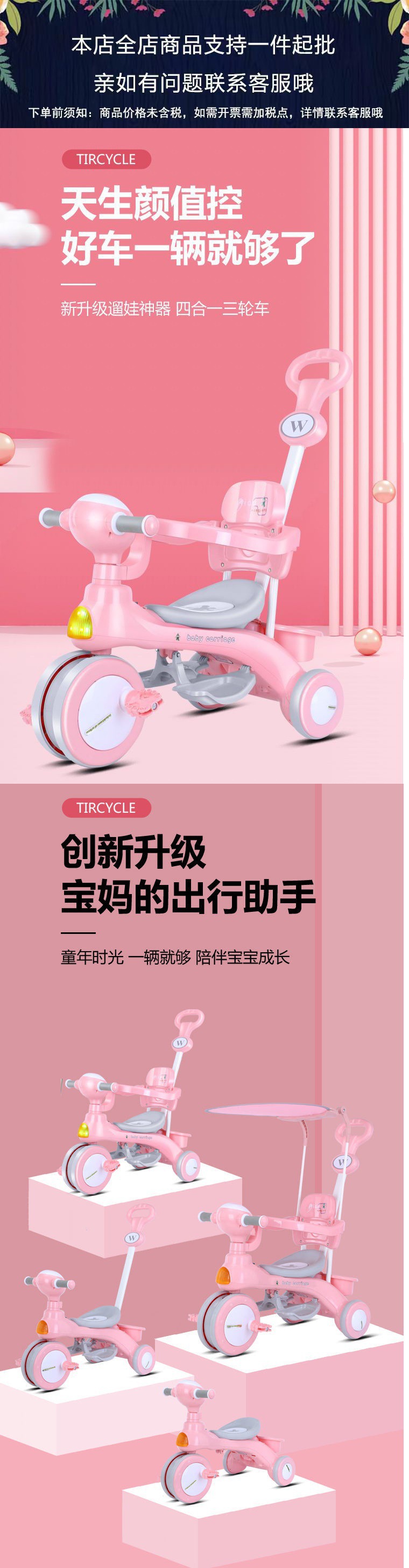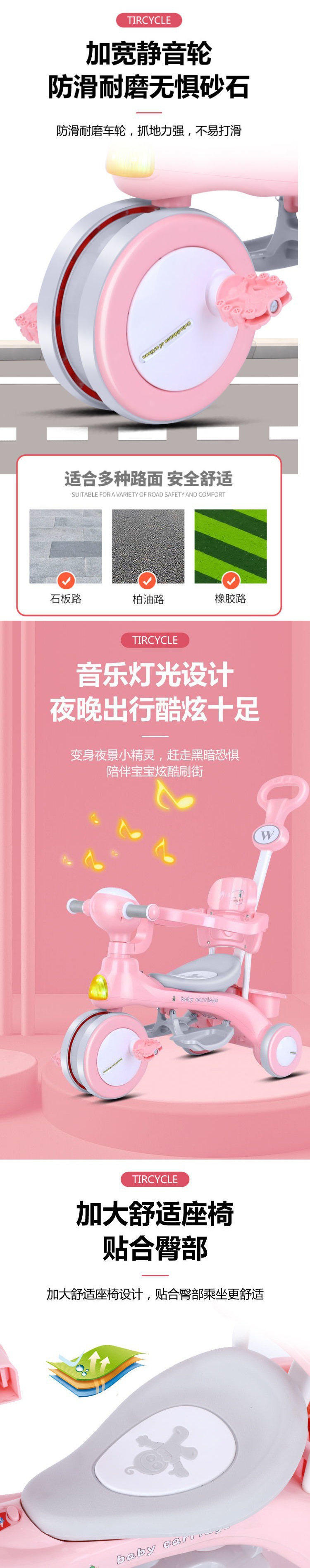 Xe đạp trẻ em ba bánh 1-3-6 nam và nữ đẩy tay chống lật xe đẩy tập đi ba bánh cho bé
