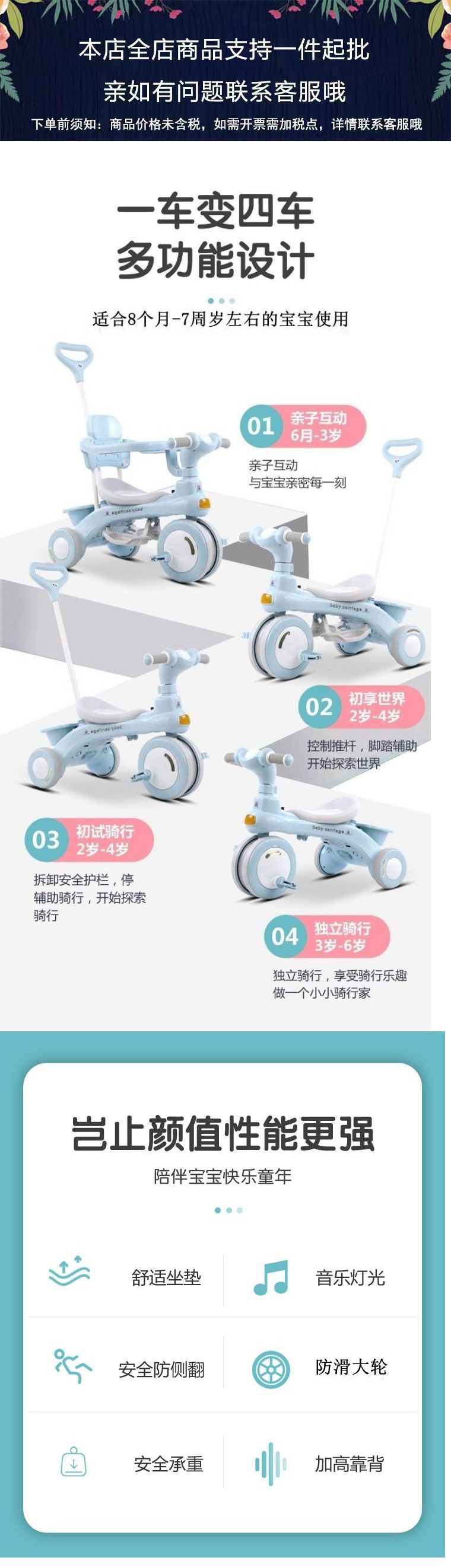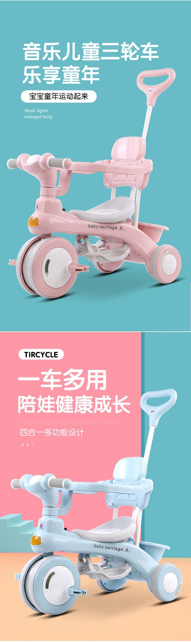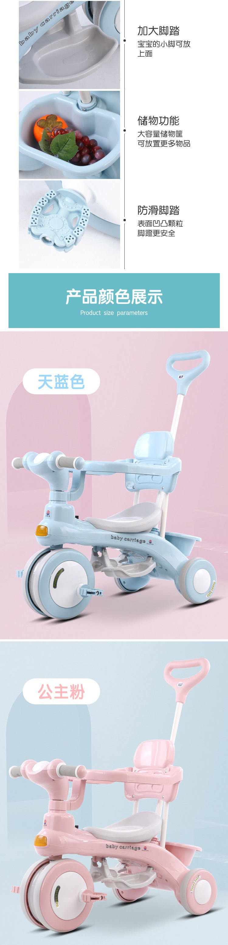 Xe đạp trẻ em ba bánh lớn trẻ em đạp xe đạp nam nữ trẻ sơ sinh đẩy tay xuyên biên giới thế hệ Amazon