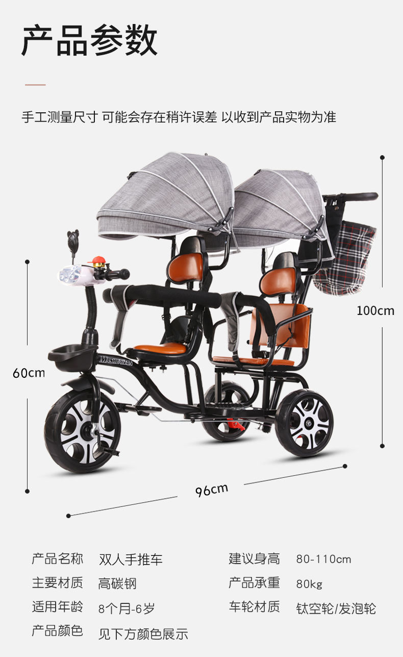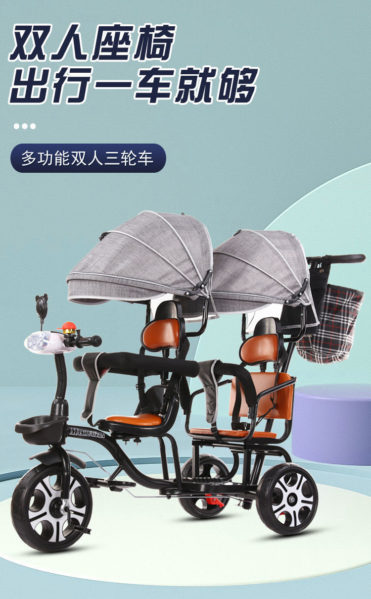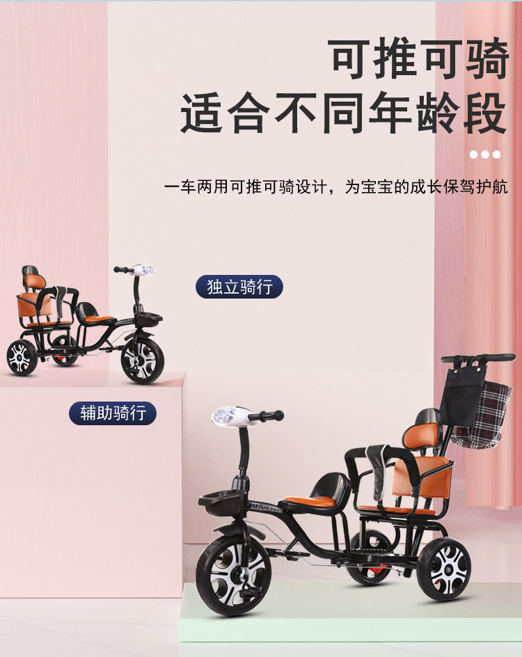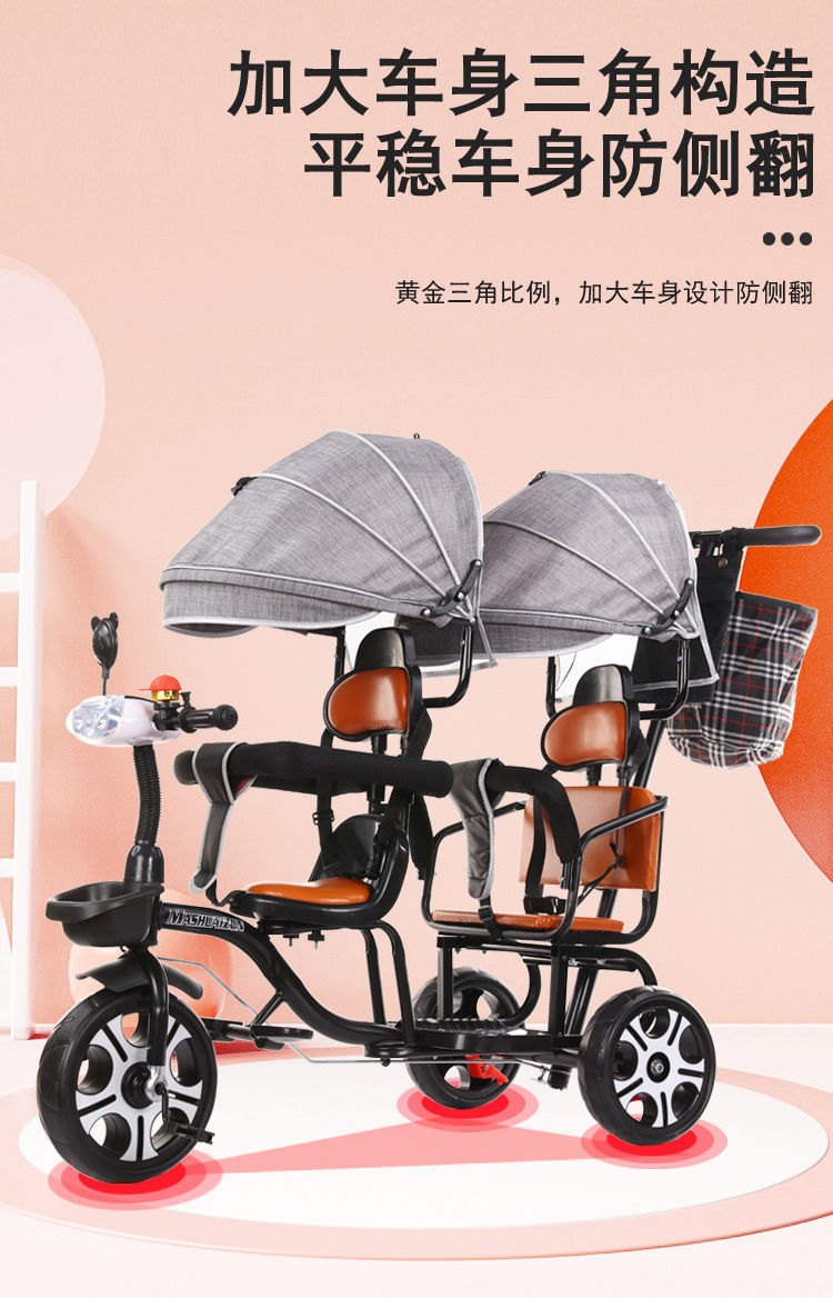 Xe đạp trẻ em đôi ba bánh hai chỗ ngồi hai bàn đạp cho trẻ em xe đẩy lớn 1-7 tuổi xe đẩy 6