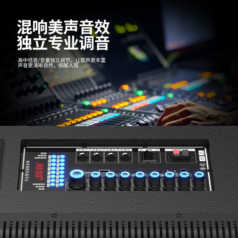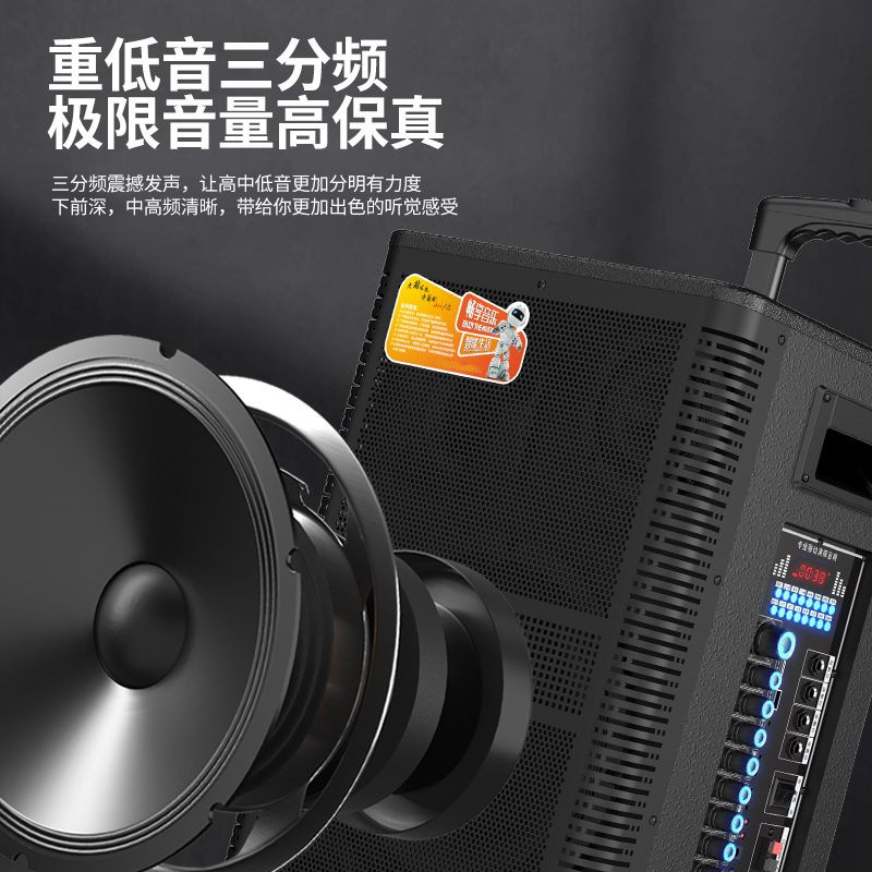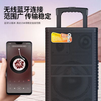 Xe đẩy ba chiều âm thanh loa công suất cao bằng gỗ thẻ âm thanh phát sóng trực tiếp máy tất cả trong một với micrô sạc tần số tự động