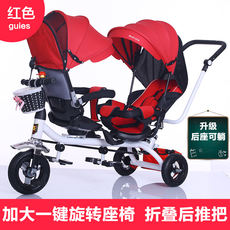 Xe đẩy đôi ba bánh cho trẻ em xe đạp đôi xe đẩy em bé nhẹ xe đẩy