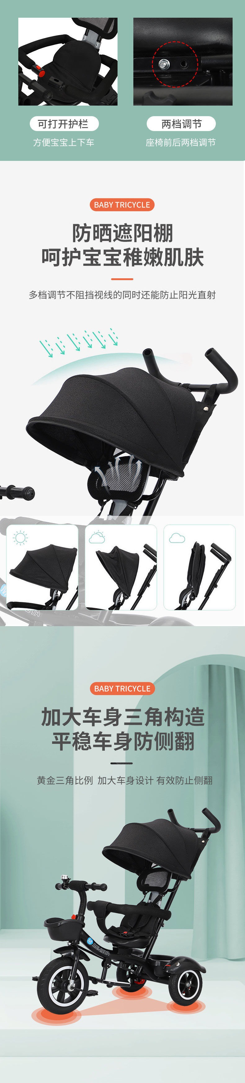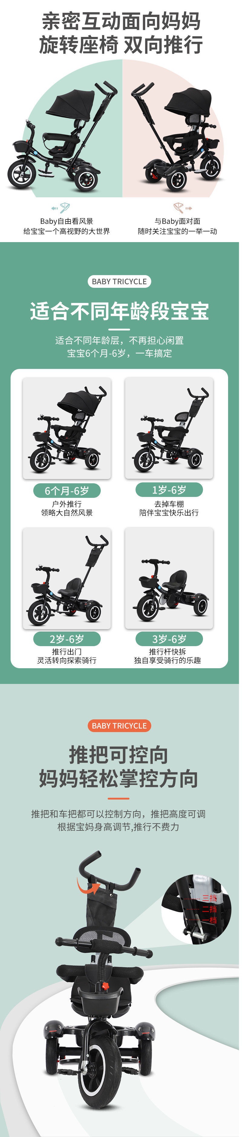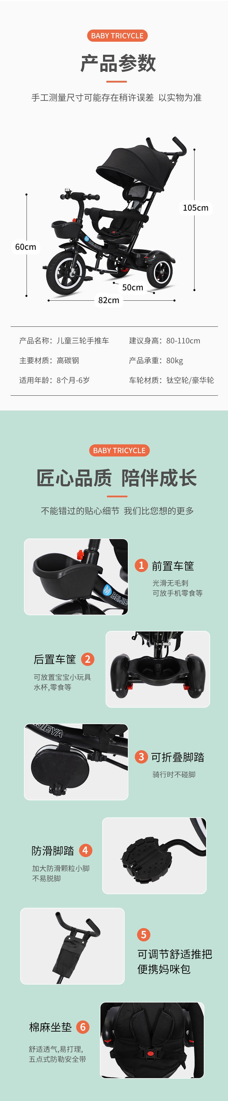 Xe đẩy em bé xe đẩy trẻ em xe đạp ba bánh đẩy tay bé 1–5 tuổi xe ba bánh nam nữ