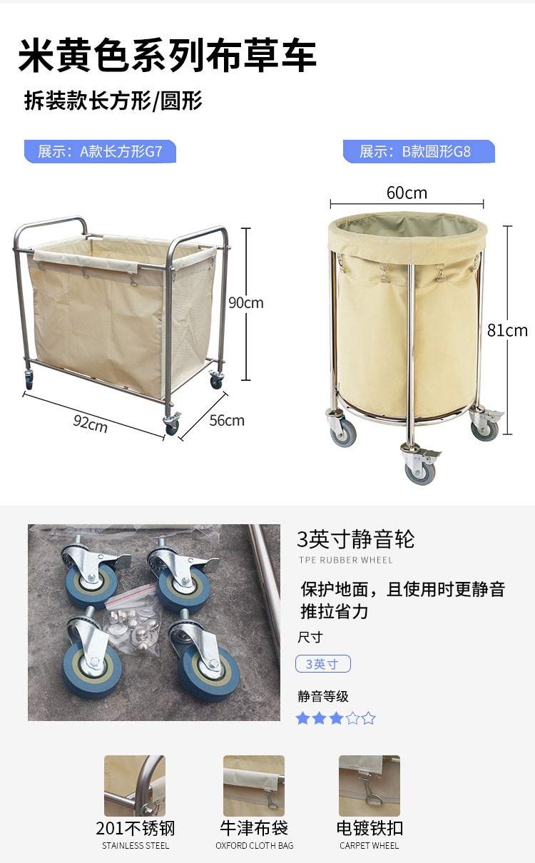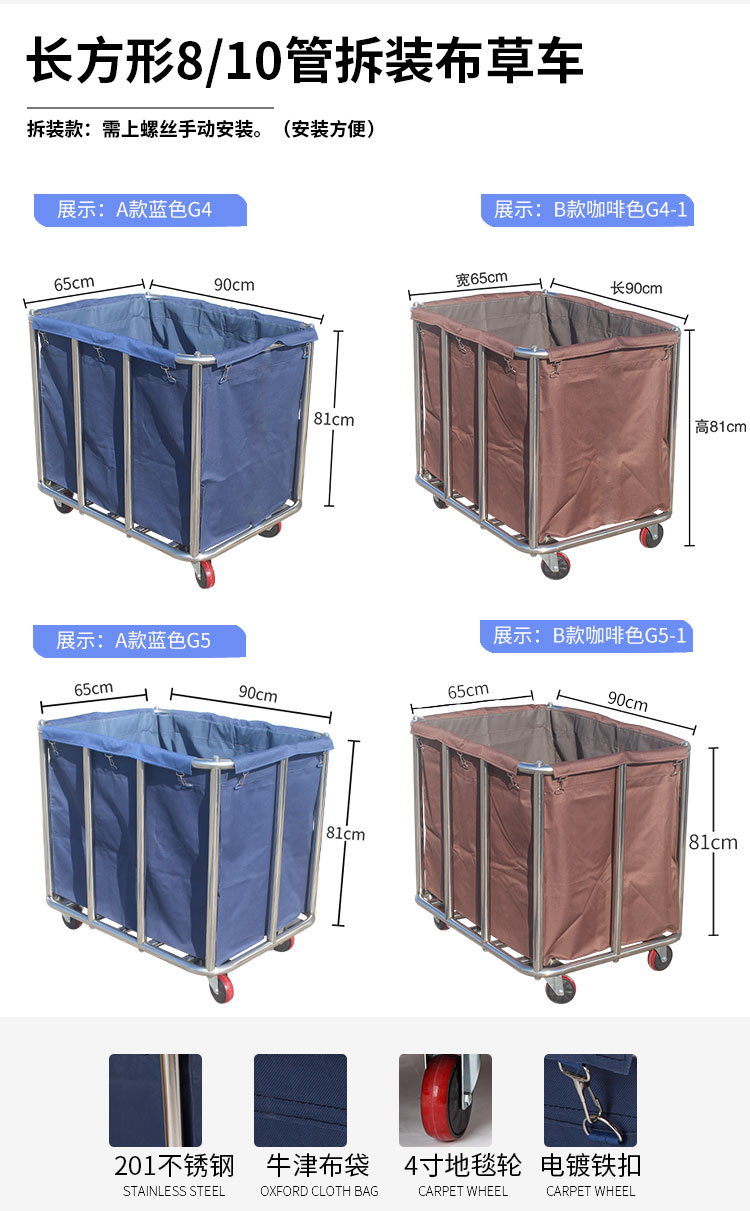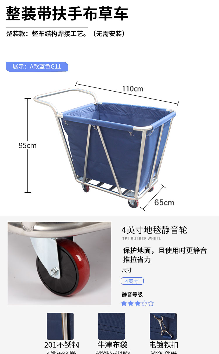 Xe đẩy hàng phục vụ phòng xe khách sạn bằng thép không gỉ dày có tay vịn đồ giặt là bộ sưu tập đồ vải bẩn tái chế đồ vải