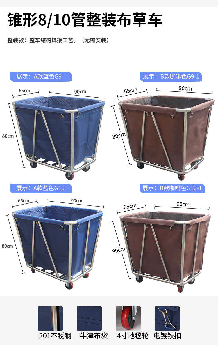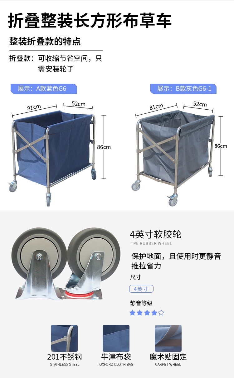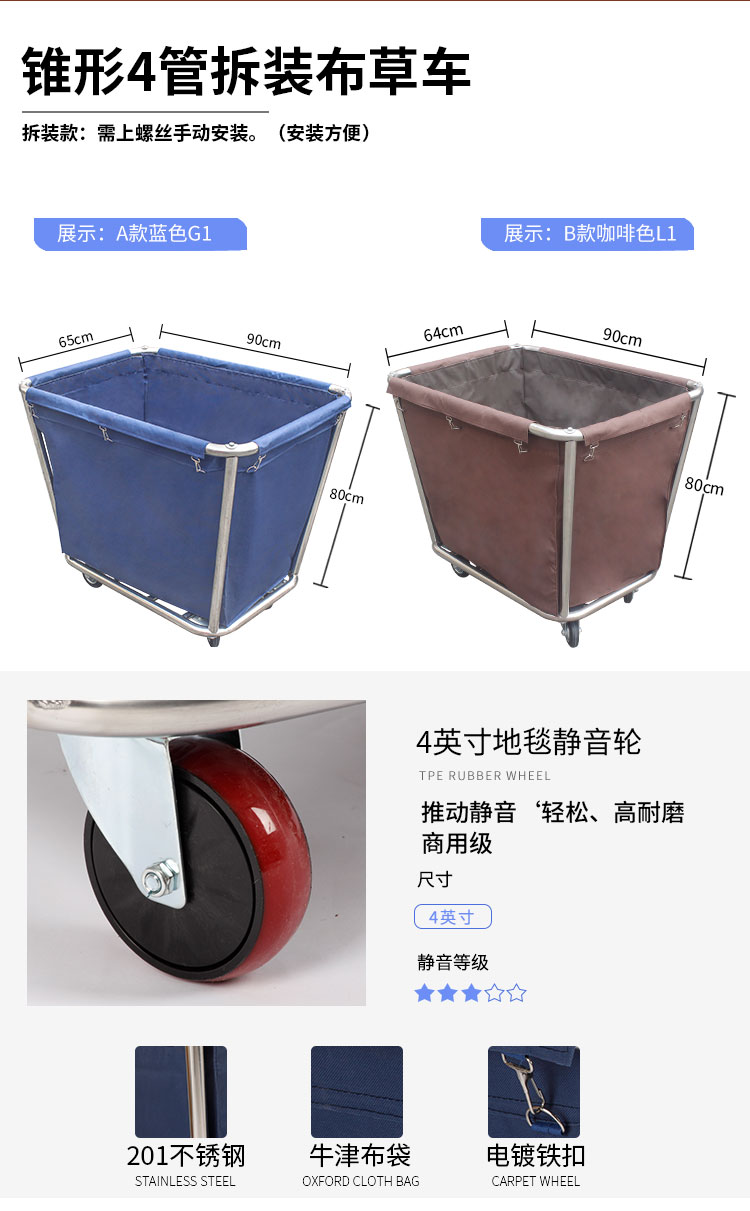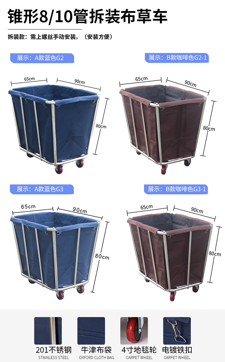 Xe đẩy hàng phục vụ phòng xe khách sạn bằng thép không gỉ dày có tay vịn đồ giặt là bộ sưu tập đồ vải bẩn tái chế đồ vải