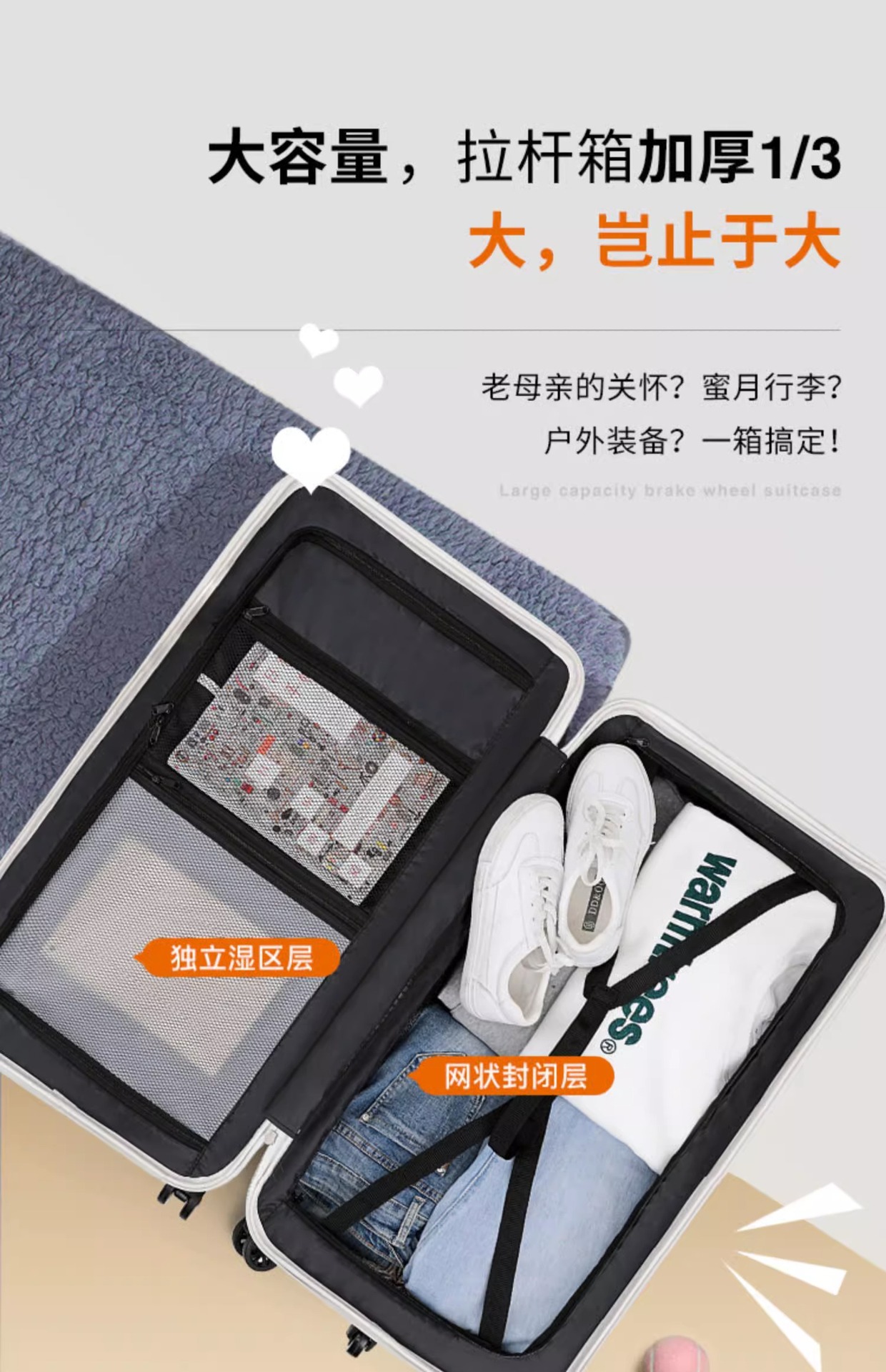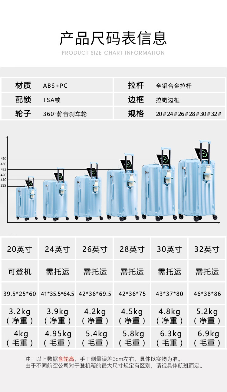 Xe đẩy hành lý có khóa kéo loại lớn có giá trị cao, hành lý du lịch mật khẩu, vali lên máy bay 242620 inch, bánh xe đa năng