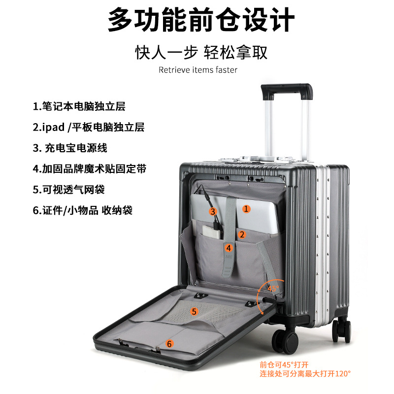 Xe đẩy nội trú va li vali mở phía trước hợp kim nhôm đa chức năng sinh viên TSA một thế hệ