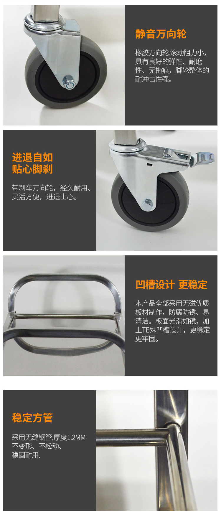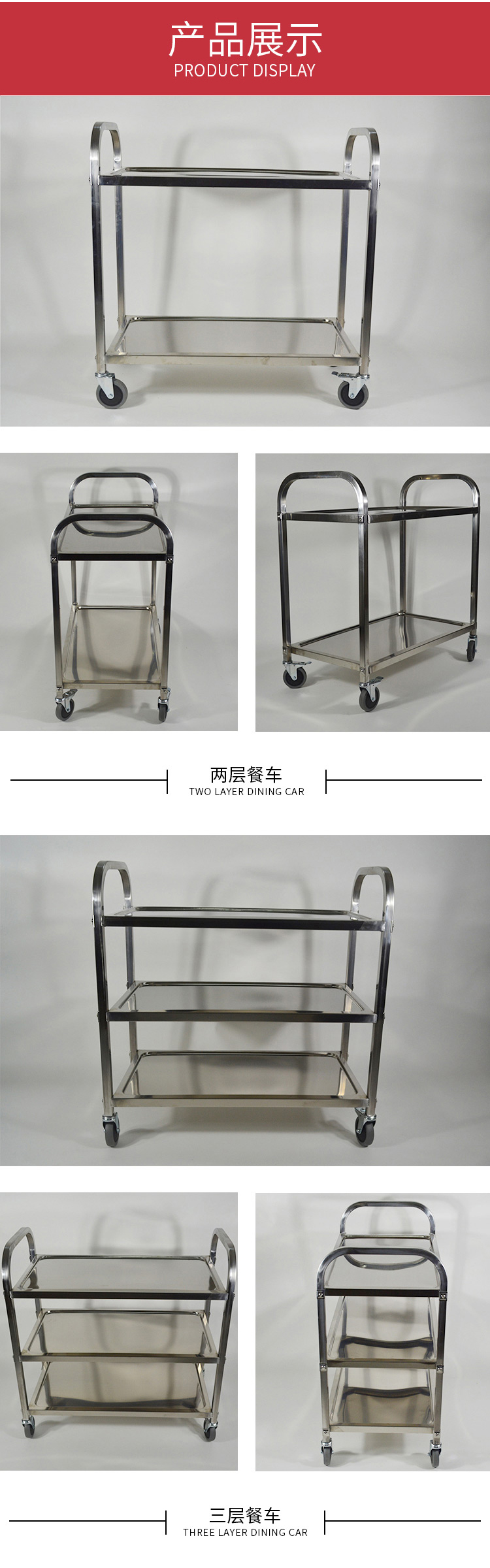 Xe đẩy xe đẩy inox 304 dày hai hoặc ba lớp xe đẩy khách sạn nhà hàng lẩu khách sạn xe đẩy rượu bộ sưu tập bát