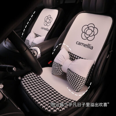 Xe đệm bốn mùa đa năng họa tiết răng chó nửa túi ghế dễ thương cho xe ô tô đệm vải mùa hè Ghế