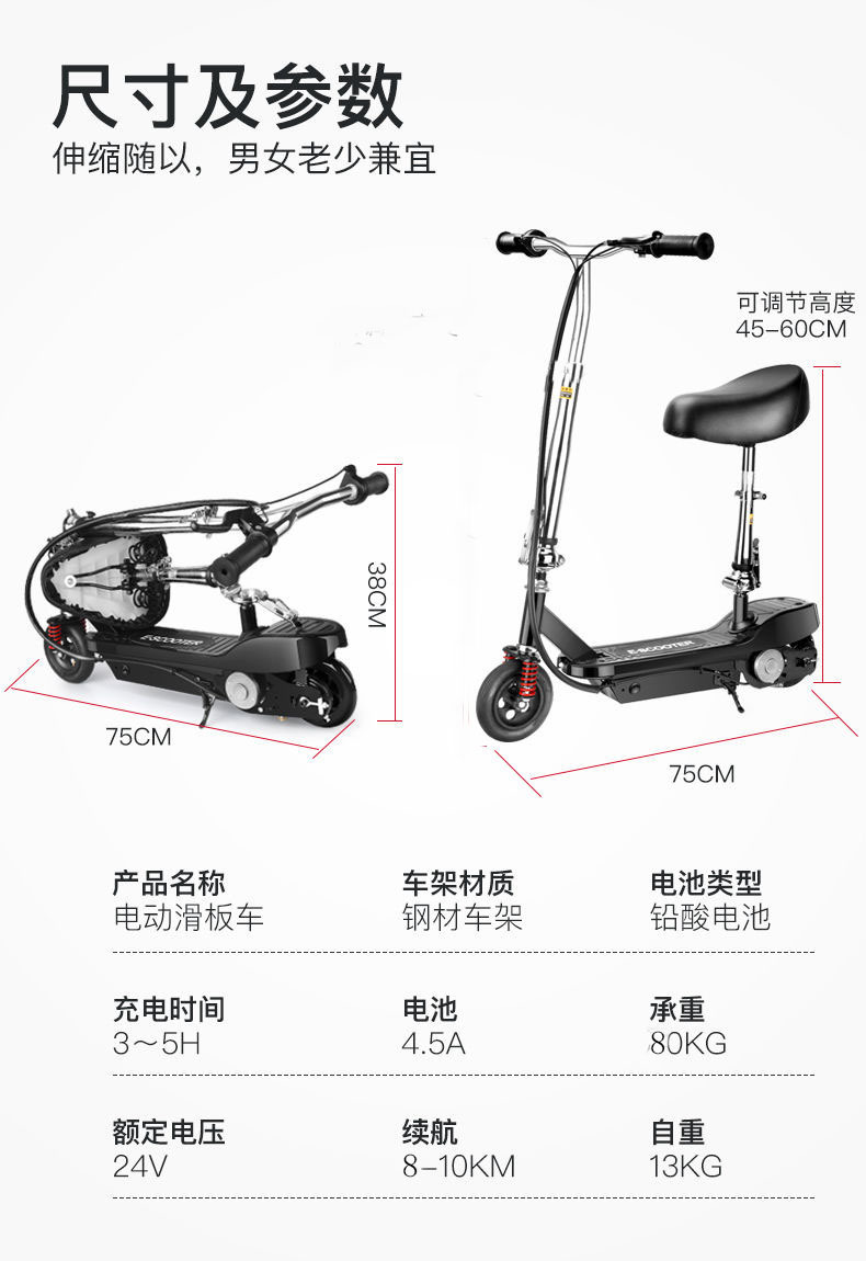 Xe điện gấp Xe tay ga điện mini Xe tay ga nhỏ Người lớn Trẻ em xuyên biên giới Bán buôn một mảnh Amazon