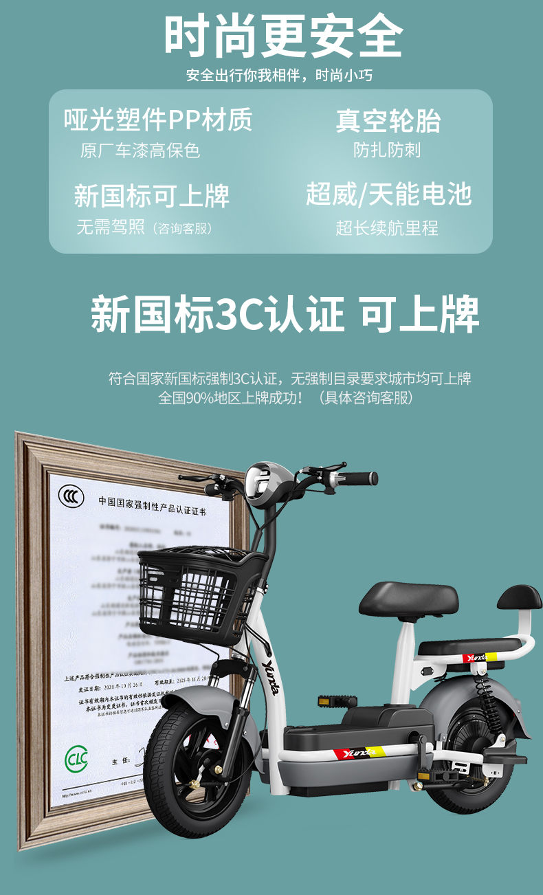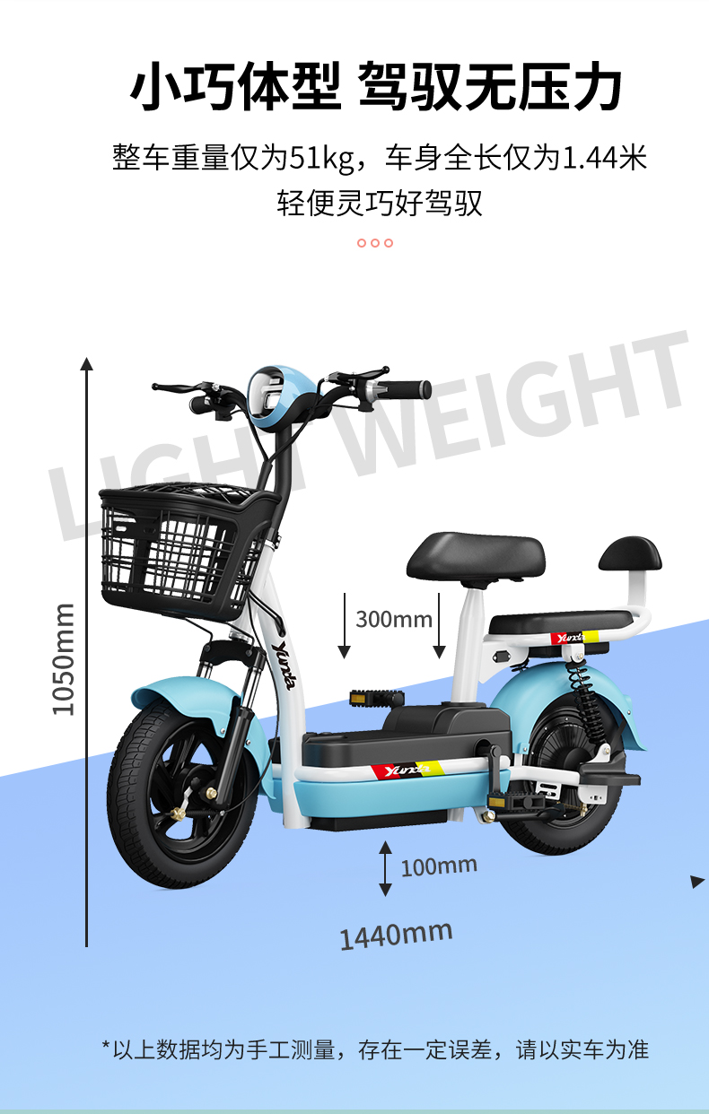 Xe điện tiêu chuẩn quốc gia mới của Yunda Bàn đạp 48v hỗ trợ di chuyển nhỏ Xe pin nhẹ xe đạp điện