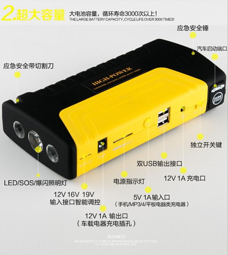 16800毫安超大容量汽车启动电源豪华款,质保一年免费换新.可启动3.0及以下排量汽油车!采用防爆炸A级电芯,长时间不开电瓶跑电,忘关灯,打雷警报器导致电瓶亏电寒冷天气难以启动,也可为笔记本,手机、游戏机、数码相机等数码产品充电,一套启动电源统统搞定,容量超大,功能齐全,非常实用!