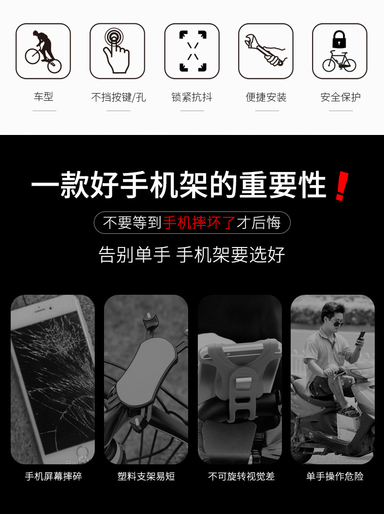 xe máy. Giá đỡ điện thoại di động Gắn xe đạp đa chức năng ghế điện thoại mở rộng thiết bị phụ tùng xe đạp gia cố xe đạp đi đêm