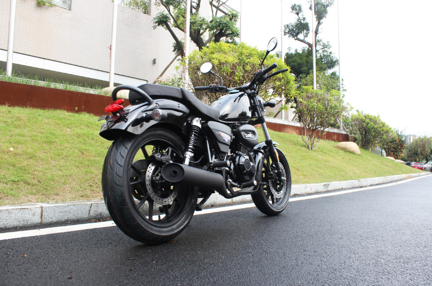 我们原创设计的高配国4电喷版肥叛250,搭载非常暴力的TBF250(皓月230的升级版)链条机,前后加宽了的17寸轮胎铝轮,前轮建大真空胎110-70-17,后轮建大真空胎140-70-17,加粗直径为37的渝安前减震,后减加粗川南减震,叶盛电喷系统,前双碟大刹盘(直径300mm)后单碟刹盘(直径240mm),重庆三三液晶智能仪表,带双闪功能的一体手把开关,运动铝质变径方向把,全车重要零部件全都是国内一线的配套厂家生产,全车百分之九十以上都是铁件,无论是从外观、质量、价格上我们这款车国内可以说是性价比无敌的了。