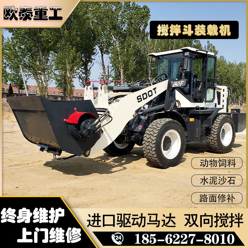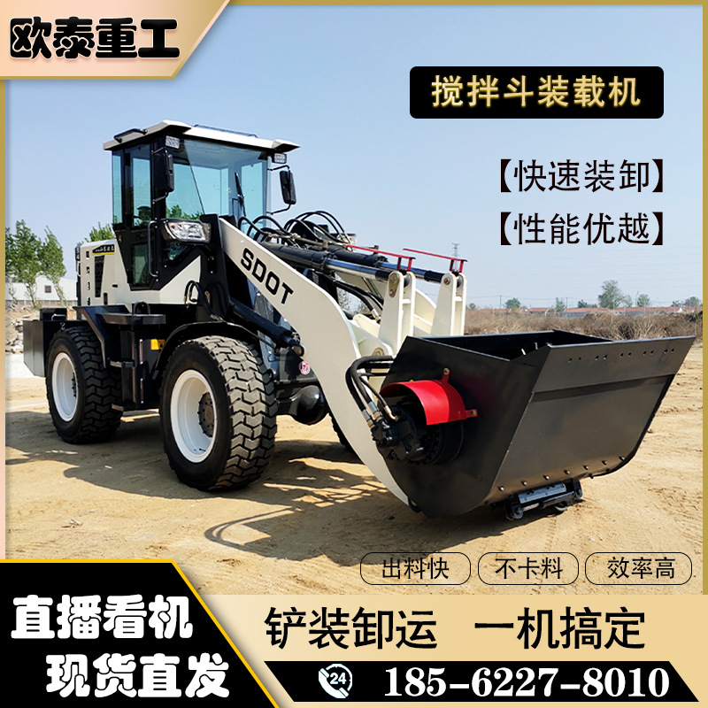 搅拌斗装载机是一款集搅拌,运输为一体的搅拌斗装载机,不同普通的搅拌运输车,而是由搅拌斗+装载机的搅拌斗装载机。快换是它的一大优势,即可换上铲斗,又可换上搅拌斗,可实现一机两用。这款自动上料搅拌斗装载机把装载机,搅拌斗结合起来。搅拌斗装载机的出现逐渐取代了搅拌机等搅拌工程机械。在这些搅拌机械中,欧泰重工搅拌斗装载机尤为突出:砂石厂,水泥混凝土,动物饲料配料,砂浆等都可见到搅拌斗装载机的身影。