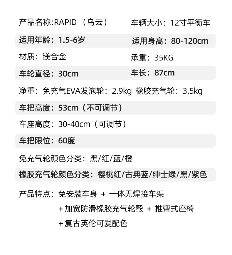 Kiểu xe: Xe hơi Somatosensory Thương hiệu: Kinderkraft Có gấp được không: Không Màu sắc: Lốp hơi – bầu trời đầy sao đen – có bàn đạp – miếng đệm đầu gối và miếng đệm khuỷu tay Bơm / lốp hơi – bột hoa anh đào – có bàn đạp – miếng đệm đầu gối và miếng đệm khuỷu tay Bơm / lốp hơi – màu cam summer Day-có bàn đạp-bơm đầu gối và khuỷu tay/lốp bơm hơi-xanh bạc hà-có bàn đạp-bơm đầu gối và khuỷu tay/lốp bơm hơi-xanh lam North Carolina-có bàn đạp-bơm đầu gối và khuỷu tay/lốp hơi-xanh dương rỗng-có bàn đạp-bơm đầu gối và khuỷu tay/lốp khí nén-bơm đầu gối và khuỷu tay màu xanh hoàng gia/lốp bơm hơi-mùa hè cam-bơm đầu gối và khuỷu tay/lốp khí nén-sao đen-bơm đầu gối và khuỷu tay/British Style-Violet-Pneumatic Tire-Knee và bơm khuỷu tay/Phong cách Anh-Bơm bột công chúa-Bơm lốp-khí nén-đầu gối và khuỷu tay/Phong cách Anh-Quý ông xanh-Bơm lốp-đầu gối và khuỷu tay/Phong cách Anh-Xanh dương cổ điển-Bơm lốp xe hơi-đầu gối và khuỷu tay/Phong cách Anh-Prince Bơm lốp-đầu gối và khuỷu tay khí nén màu đen/Bơm lốp-đầu gối và khuỷu tay kiểu Anh-Prince màu đen-khí nén lốp-đầu gối và khuỷu tay Cấu trúc khung: Mức cấu hình xe tổng thể: Loại tiêu chuẩn Model: RAPID3_ze5DY Giới tính áp dụng: Trung tính Hệ thống phanh: Phanh chữ V/Phanh đĩa Tải trọng chung : 75kg Chất liệu: Hợp kim nhôm Kích thước xe: 12 Chế độ đẩy: Tùy chỉnh gia công không dây chuyền: Không Có nguồn riêng để xuất khẩu xuyên biên giới hay không: Không