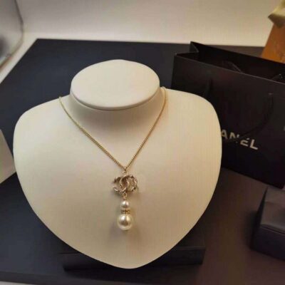 Xiangjia Phiên Bản Cao Cấp Vòng Cổ Đôi C Bầu Ngọc Trai Cùng Kim Cương Giả Mặt Dây Chuyền Cổ Điển Xiangjia Xương Đòn Dây Chuyền Nữ