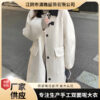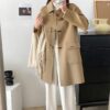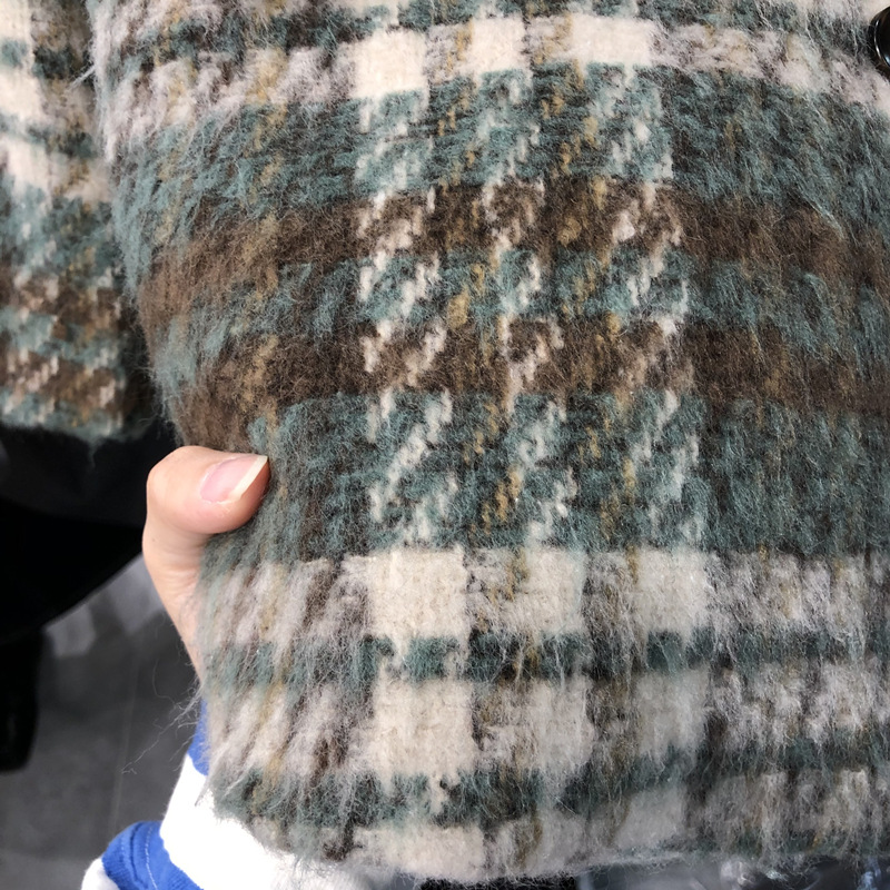 Xiaoxiangfeng Mùa Đông Áo Khoác Dày Nữ Kẻ Sọc Phối Màu 20% Len Rời Retro Dài Vừa Hông-Che Phủ Áo Khoác Nữ