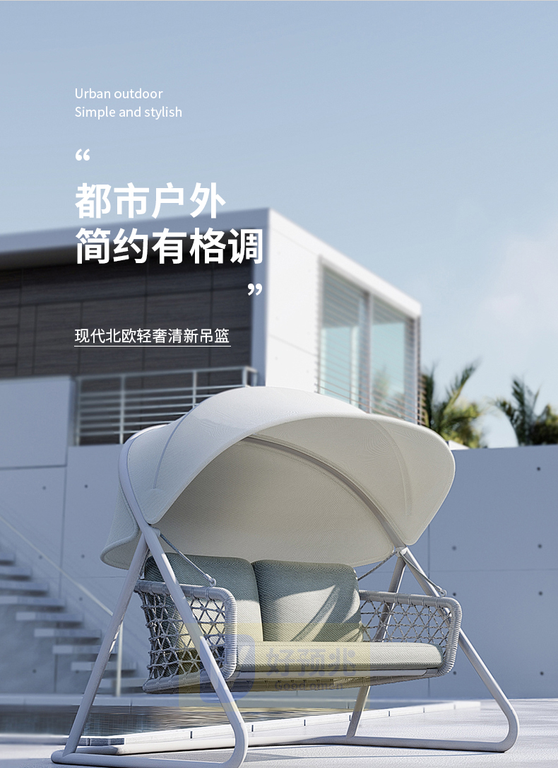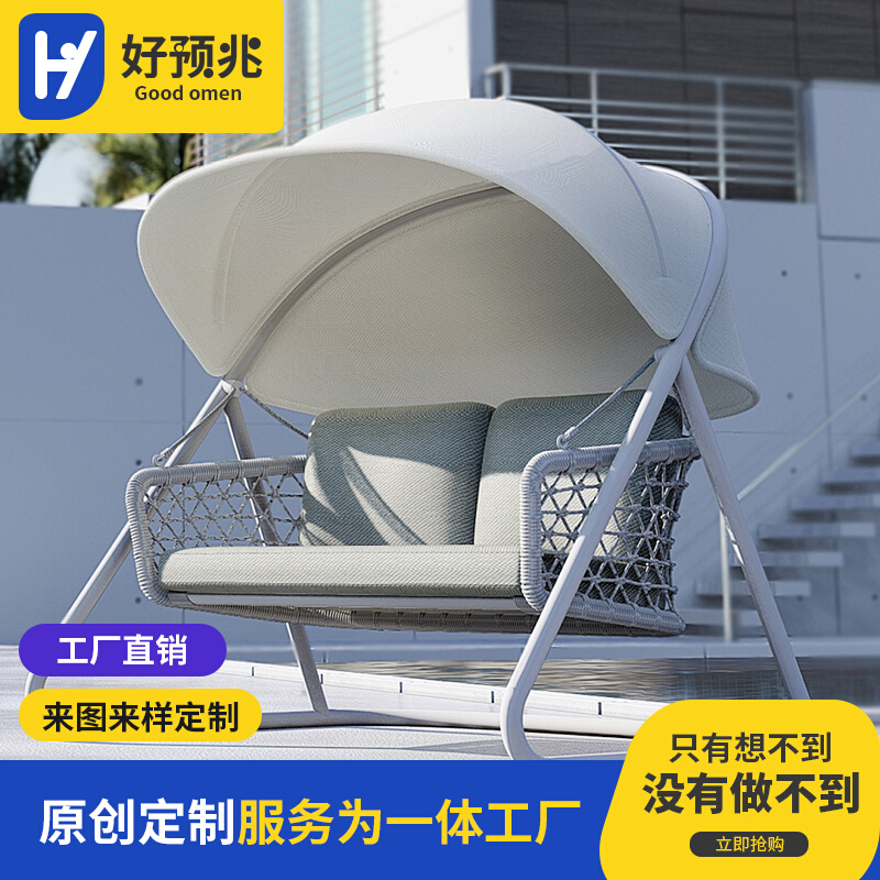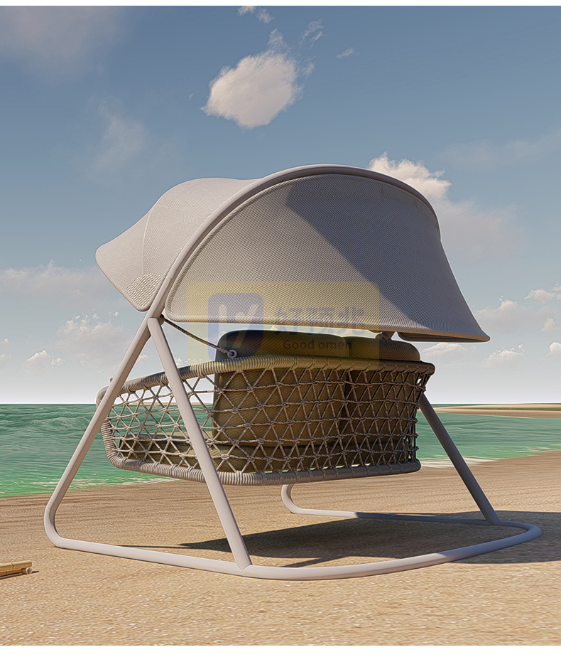 Xích đu mây ngoài trời có mái che nhập khẩu.