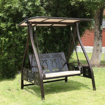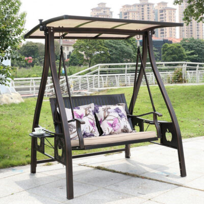 Xích đu ngoài trời biệt thự sân vườn hợp kim nhôm đúc xích đu ba vị trí xích đu sắt trắng sáng tạo ngoài trời