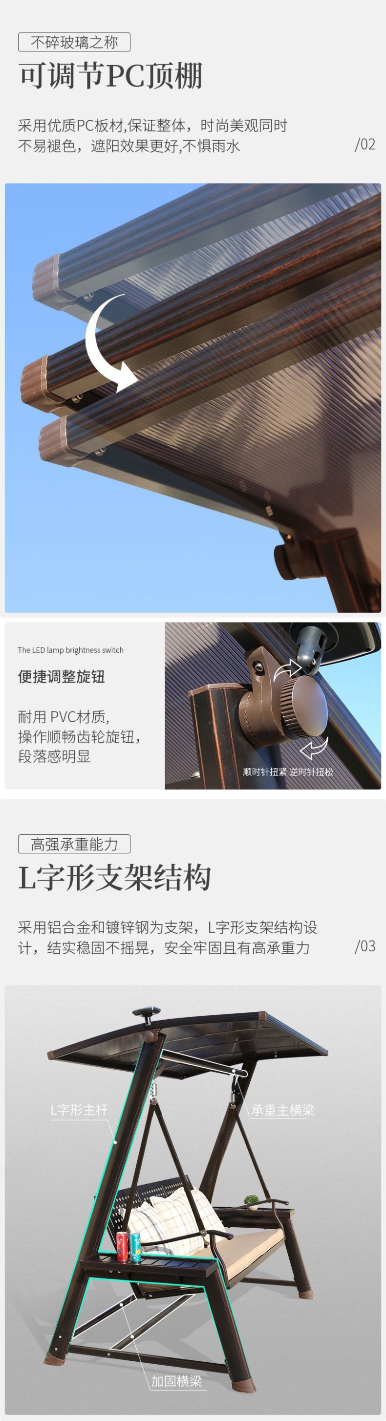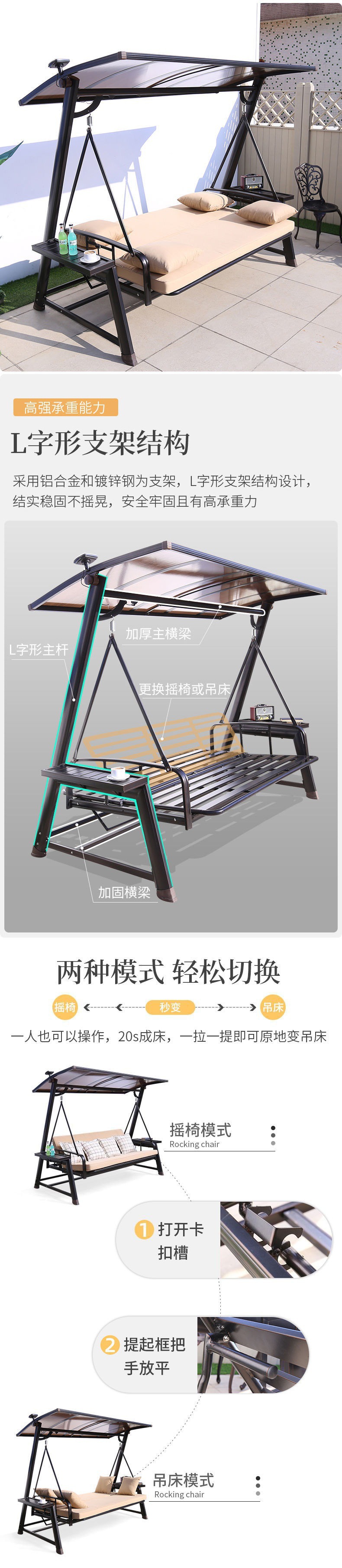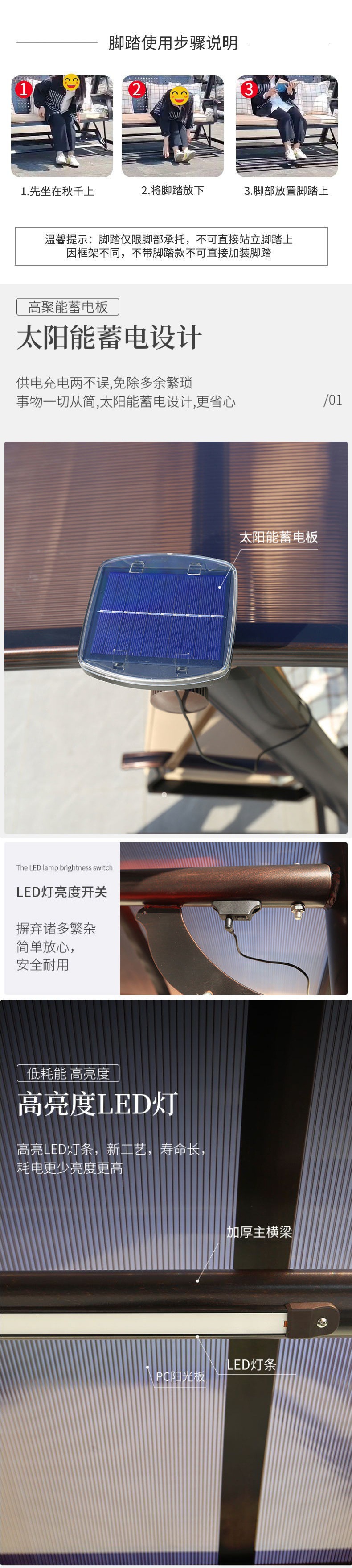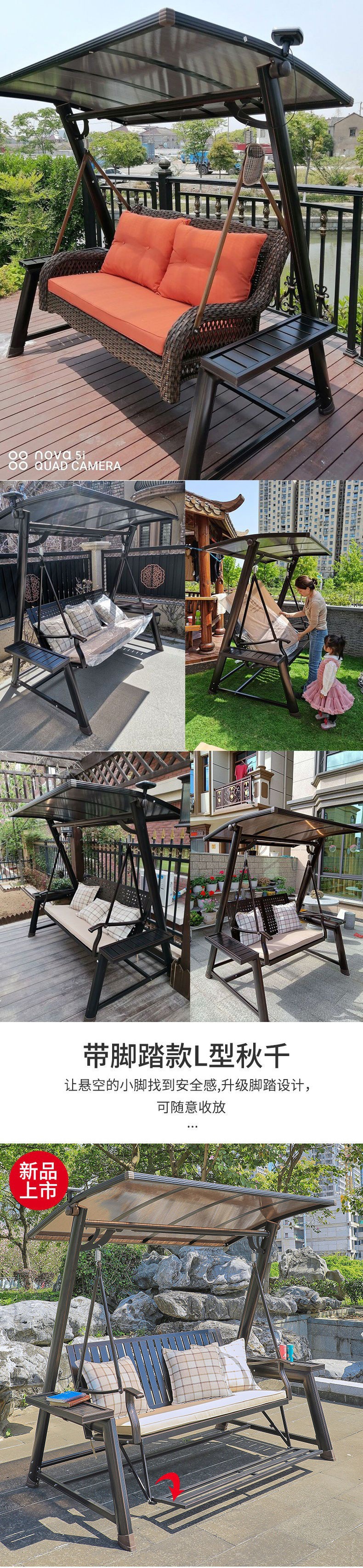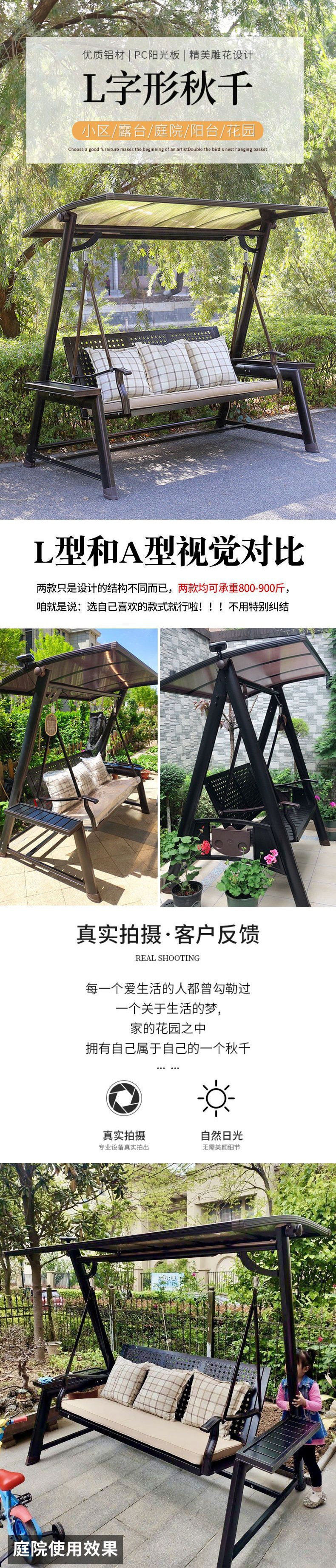 Xích đu ngoài trời ghế treo ngoài trời sân trong sân vườn đôi xích đu ba người ghế bập bênh ban công sân thượng xích đu năng lượng mặt trời