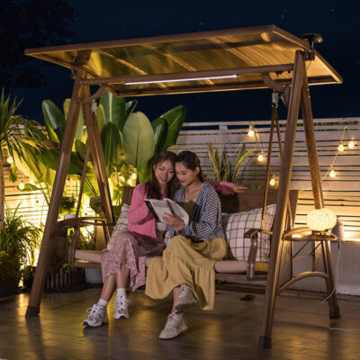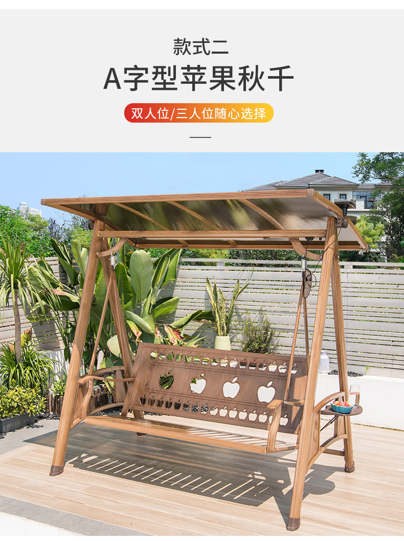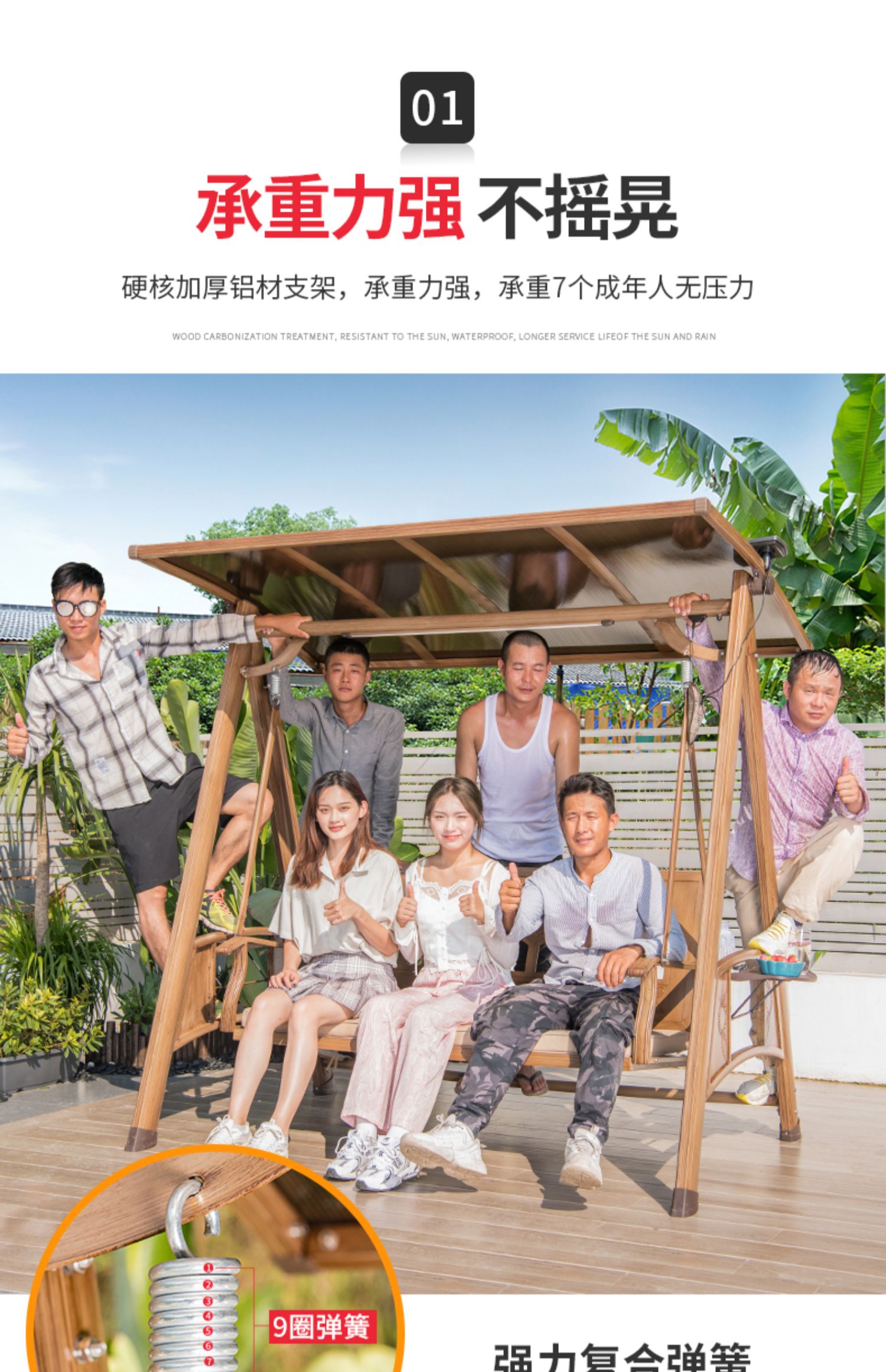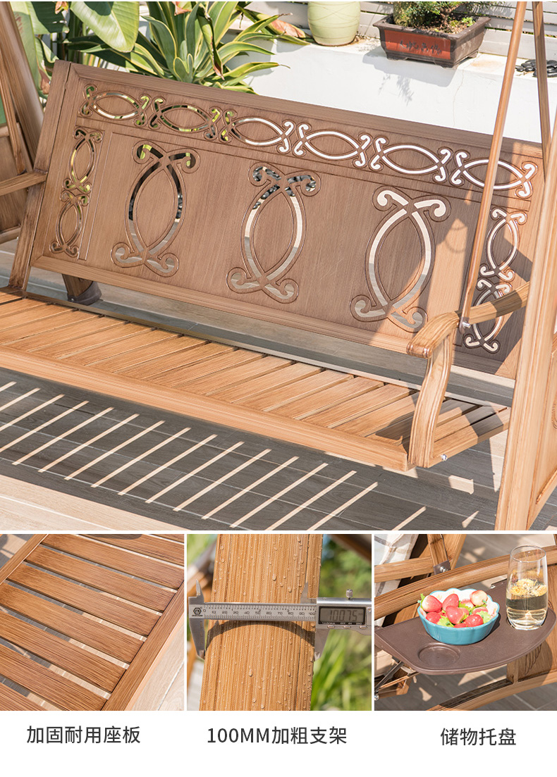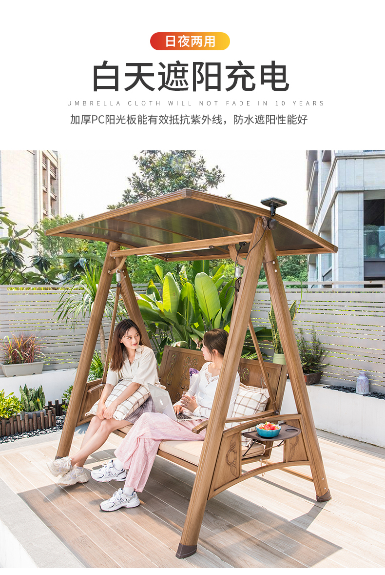 Xích Đu Ngoài Trời Sân Vườn Ban Công Ngoài Trời Chống Mưa Năng Lượng Mặt Trời Giả Gỗ Khung Nhôm Sun Panel Hình Hoa Đính Đá Xoay