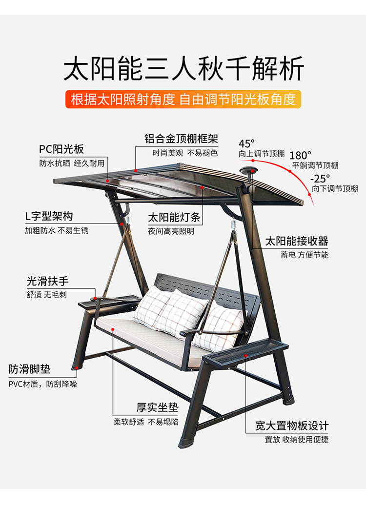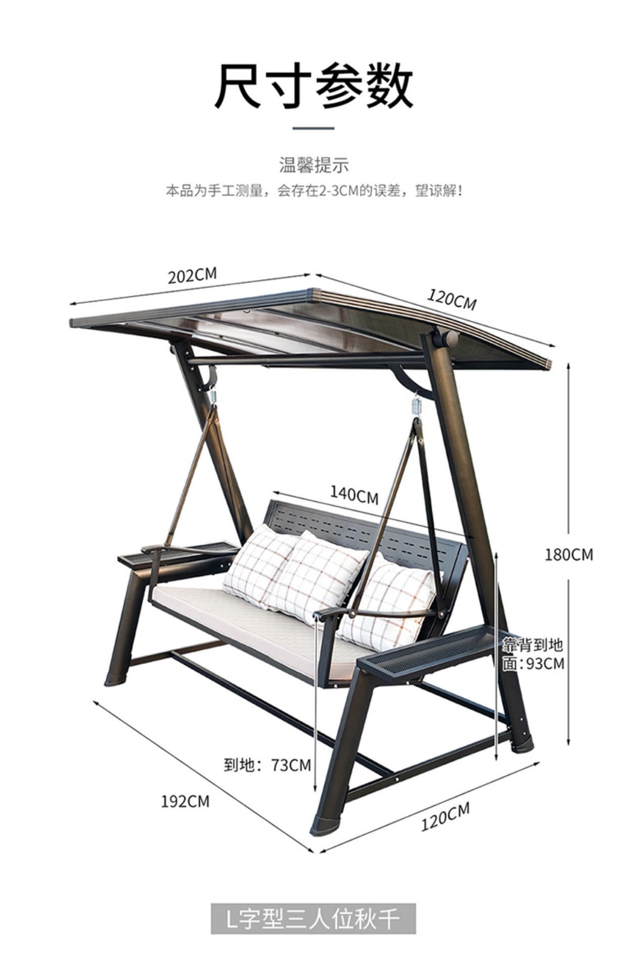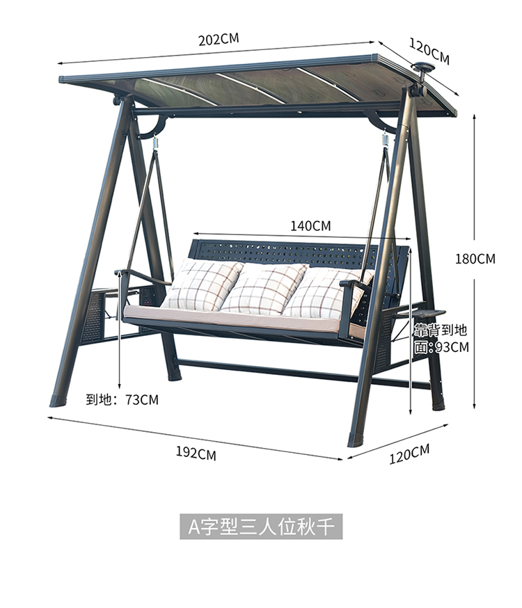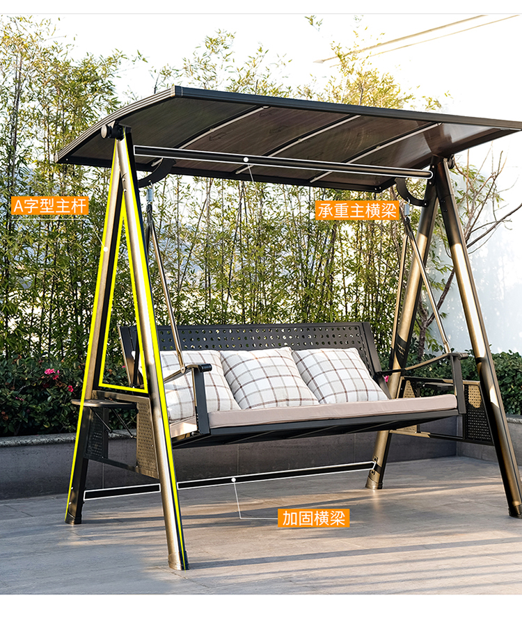 Xích đu ngoài trời Sân vườn Biệt thự Ban công Đôi Ba Ghế treo Đúc Nhôm Ngoài trời Giải trí tại nhà Xích đu