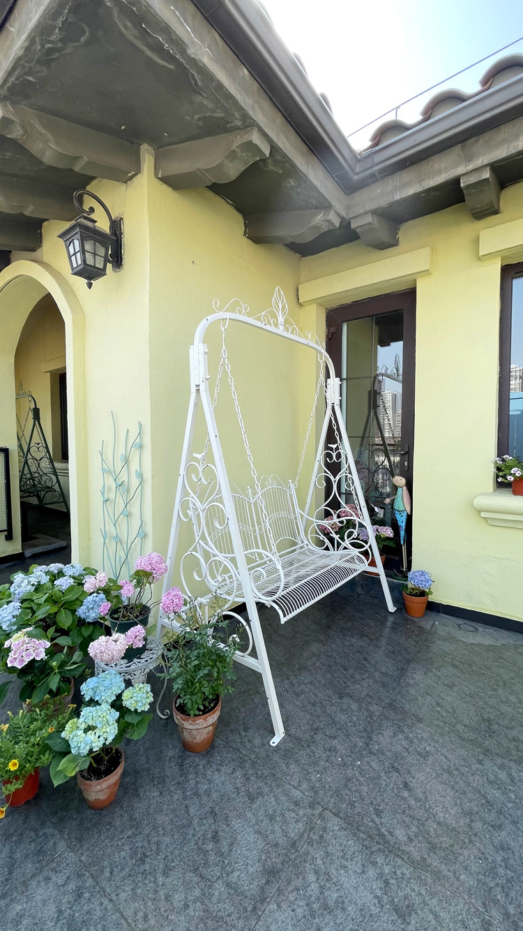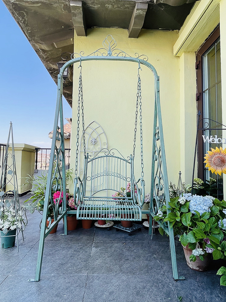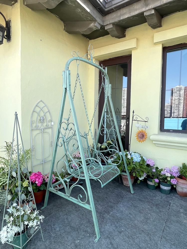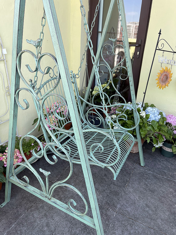 Xích đu sắt rèn ngoài trời nhập khẩu.