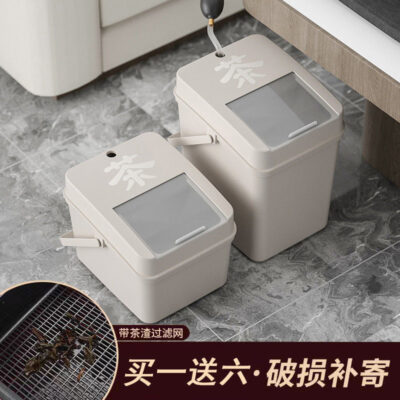 Xô đựng trà bã trà thùng rác nhựa gia dụng có thể tách khô và ướt Bộ lọc lưu trữ kung fu hai trong một xô thoát nước thải