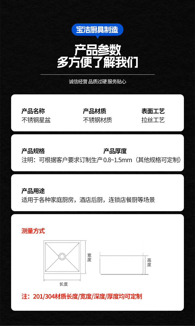 Sản phẩm nổi bật với các tính năng: Xô inox chậu sao nhà bếp bàn làm việc thương mại xô rửa chén nhà sản xuất bồn rửa inox công nghiệp. Quý khách có nhu cầu mua Chậu rửa nhập khẩu vui lòng liên hệ với chúng tôi để được tư vấn hỗ trợ. Dịch vụ mua hàng Trung Quốc sẽ hỗ trợ quý khách mua hàng từ nhà cung cấp và giao tới tận tay quý khách hàng..