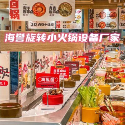 Xoay thiết bị lẩu nhỏ toàn bộ đường ray giao thức ăn hai lớp bàn tiệc tự chọn quay giao thức ăn không người lái thông minh tàu nhỏ
