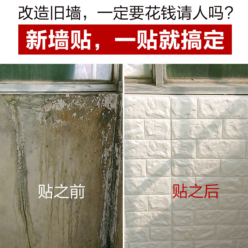 2:墙贴是由高密度发泡软包xpe材质,隔音,隔热,防撞,防水的,正面可以擦洗
