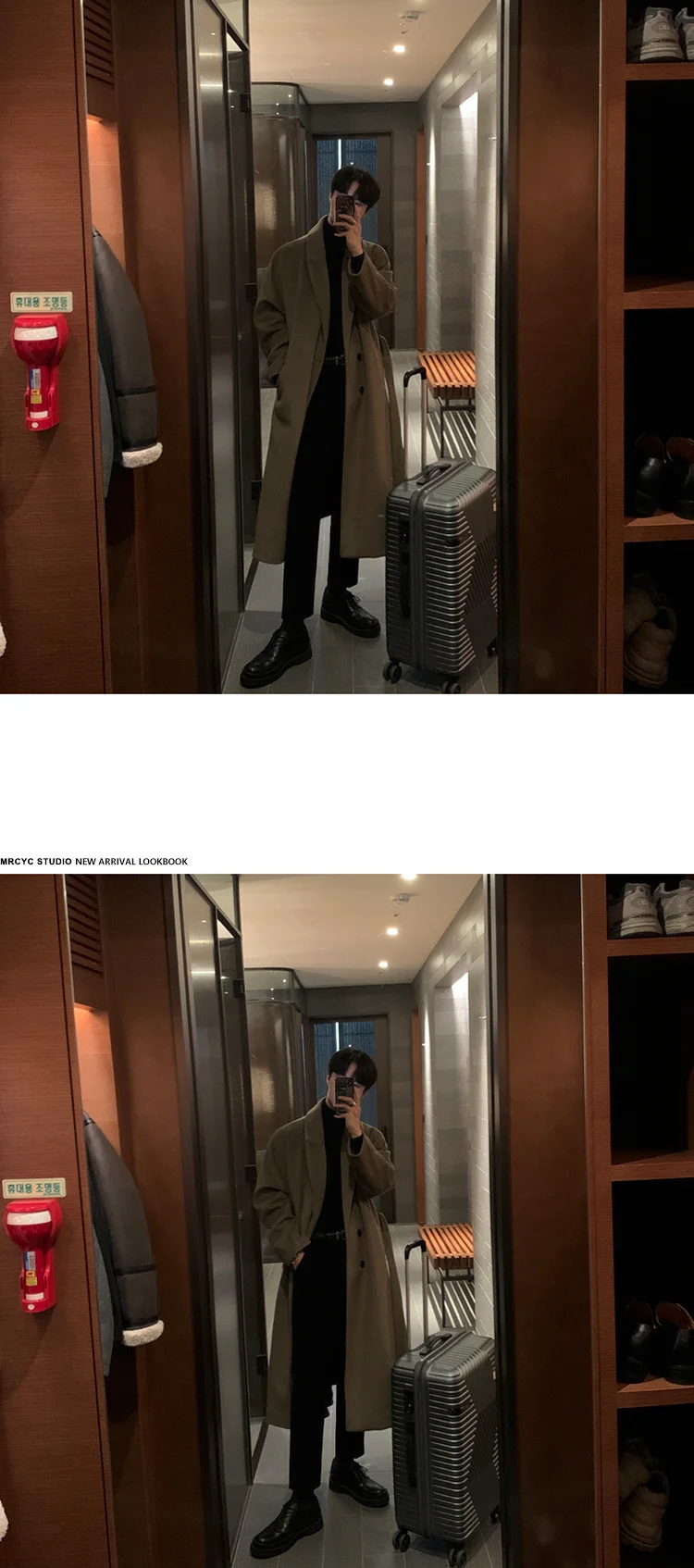 Korean Trend Men’s Loose Casual Single-breasted Overcoat Autumn Winter Fashion New Long Sleeve Woolen Long Coat ong Coat