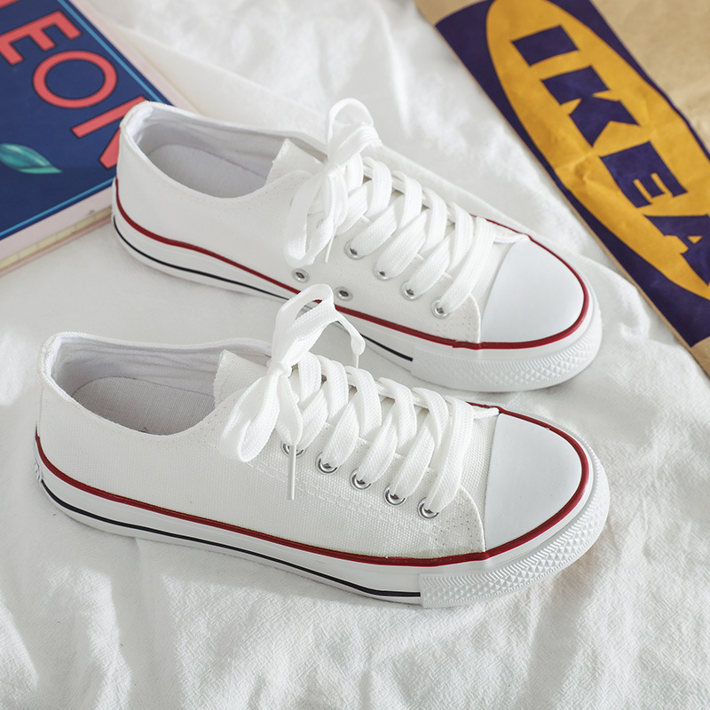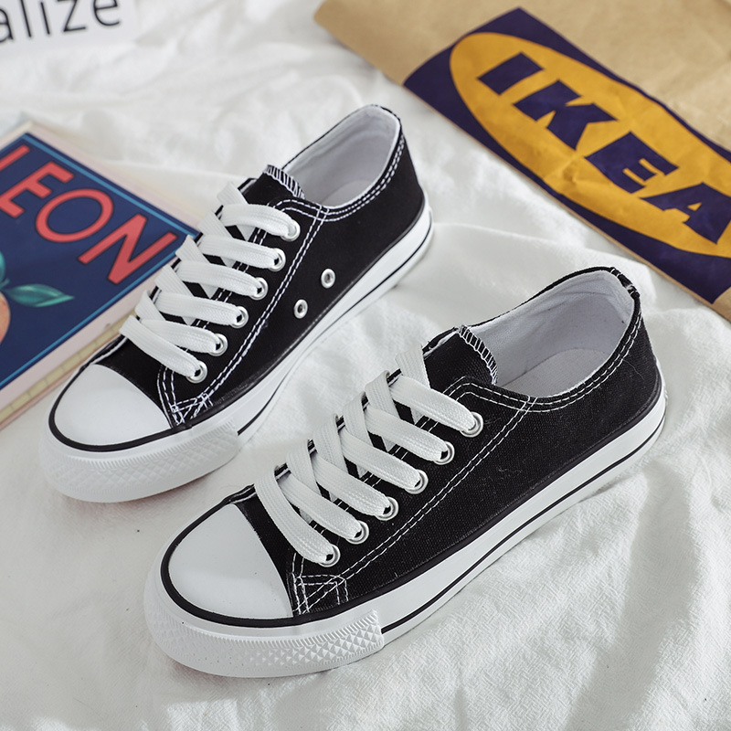 Xu hướng Ins phiên bản Hàn Quốc của giày vải cổ thấp dành cho nữ giày cao su học sinh thường xanh cổ điển Giày thể thao cặp đôi Harajuku