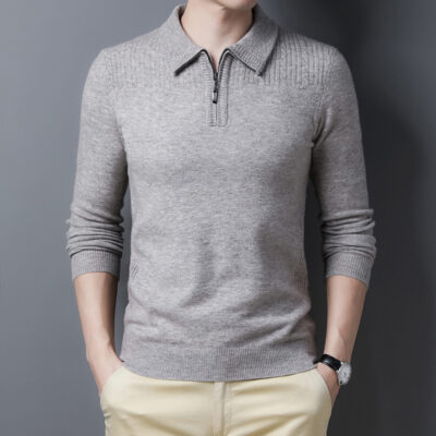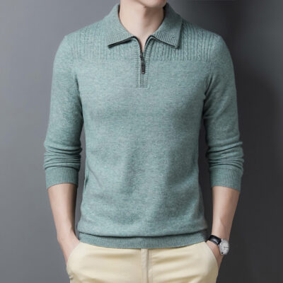 Xu hướng mùa đông áo len nam có ve áo giản dị dành cho người trung niên và thanh niên áo chui đầu dài tay áo len nam Hàn Quốc có khóa kéo