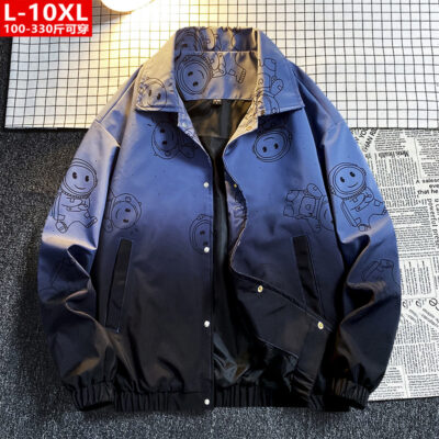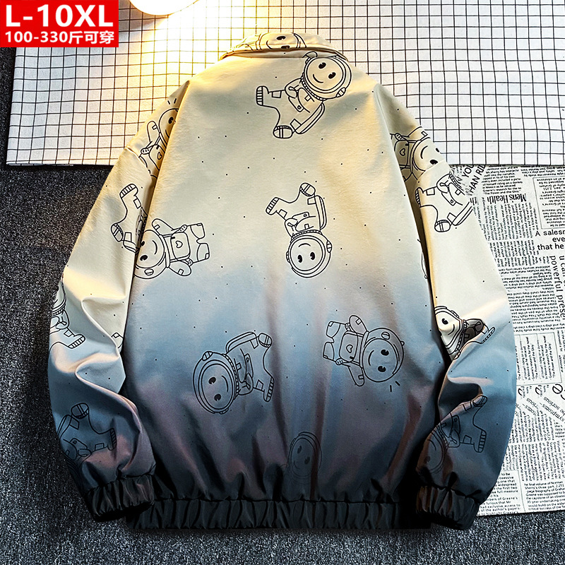 Xu hướng mùa xuân và mùa thu Quần áo nam Đẹp trai In hình Gradient Áo khoác cổ vuông Người béo Plus Kích thước Kích thước lớn Áo khoác thường