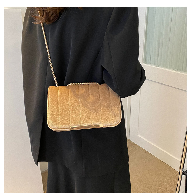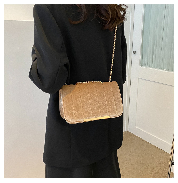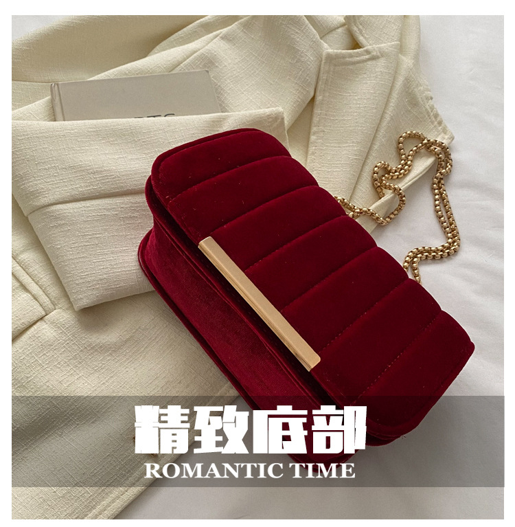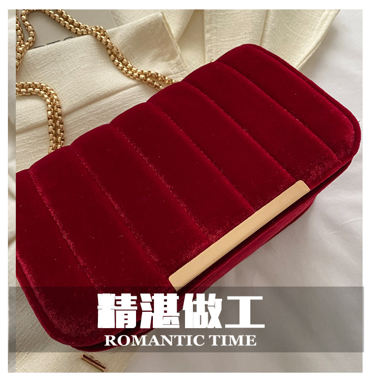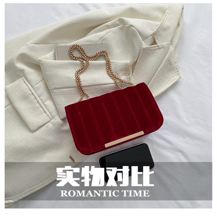 Xu hướng thời trang nhung túi vuông nhỏ nữ mùa xuân 2023 phong cách nước ngoài mới túi đeo vai chuỗi đơn giản túi Messenger