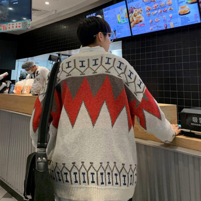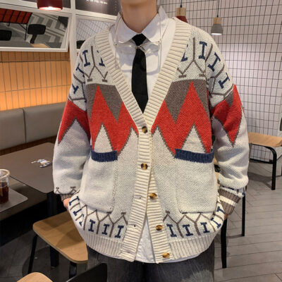 Xu hướng thu đông 2022 phong cách Hồng Kông dáng rộng cardigan cổ chữ V nút áo len nam