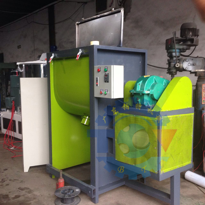 卧式螺带搅拌机由搅拌仓、搅拌器、驱动装置基本组成,U型管状仓内安装双层异向螺带盘绕的搅拌器轴,外螺旋带在动力的驱动下,其盘绕形式配合旋转方向把物料从U型仓两端向中央地带推动,而内螺旋带把物料从中间向两端推动,形成对流搅拌。干粉砂浆搅拌机 大型卧式搅拌机,U型不锈钢搅拌机,除尘装置搅拌机,干粉砂浆搅拌机厂家