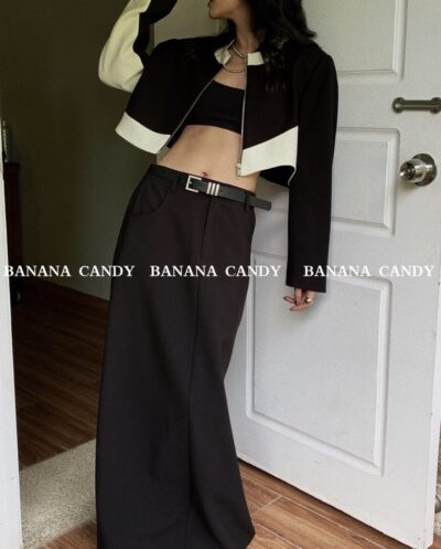 Xuân/Hè 2023 Kẹo Chuối Cổ Điển Màu Sắc Tương Phản Áo Khoác Nữ Spice Girl Đồng Phục Bóng Chày Áo Khoác