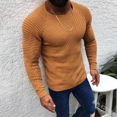 xuất khẩu 2021 Âu Mỹ nam cổ tròn dài tay dáng ôm vừa vặn áo len thời trang giản dị hàng đầu bán buôn ngoại thương xuất khẩu