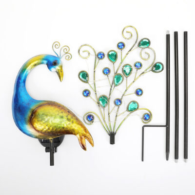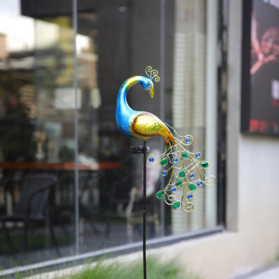 Xuất khẩu Amazon đèn năng lượng mặt trời đèn sân vườn con công thủ công mỹ nghệ đồ trang trí bằng sắt rèn cắm trong sân vườn đèn trang trí