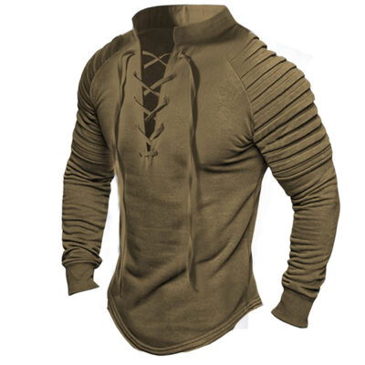 xuất khẩu Amazon phong cách nóng bỏng áo thun tay áo xếp ly phối màu áo giản dị đường phố retro áo dài tay