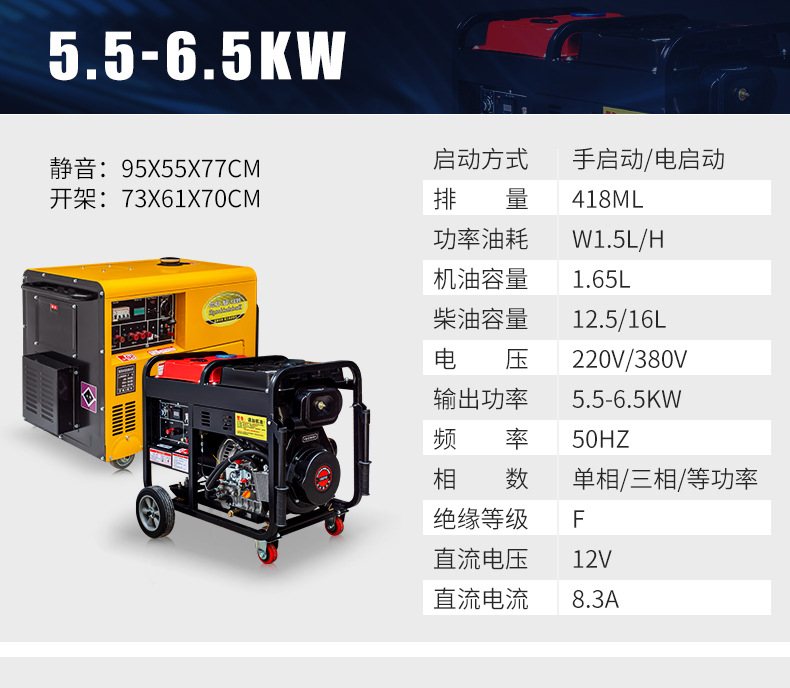 Xuất khẩu máy phát điện diesel gia đình nhỏ làm mát bằng không khí một pha 3KW8KW10 kilowatt tắt tiếng ngoài trời điện áp kép ba pha